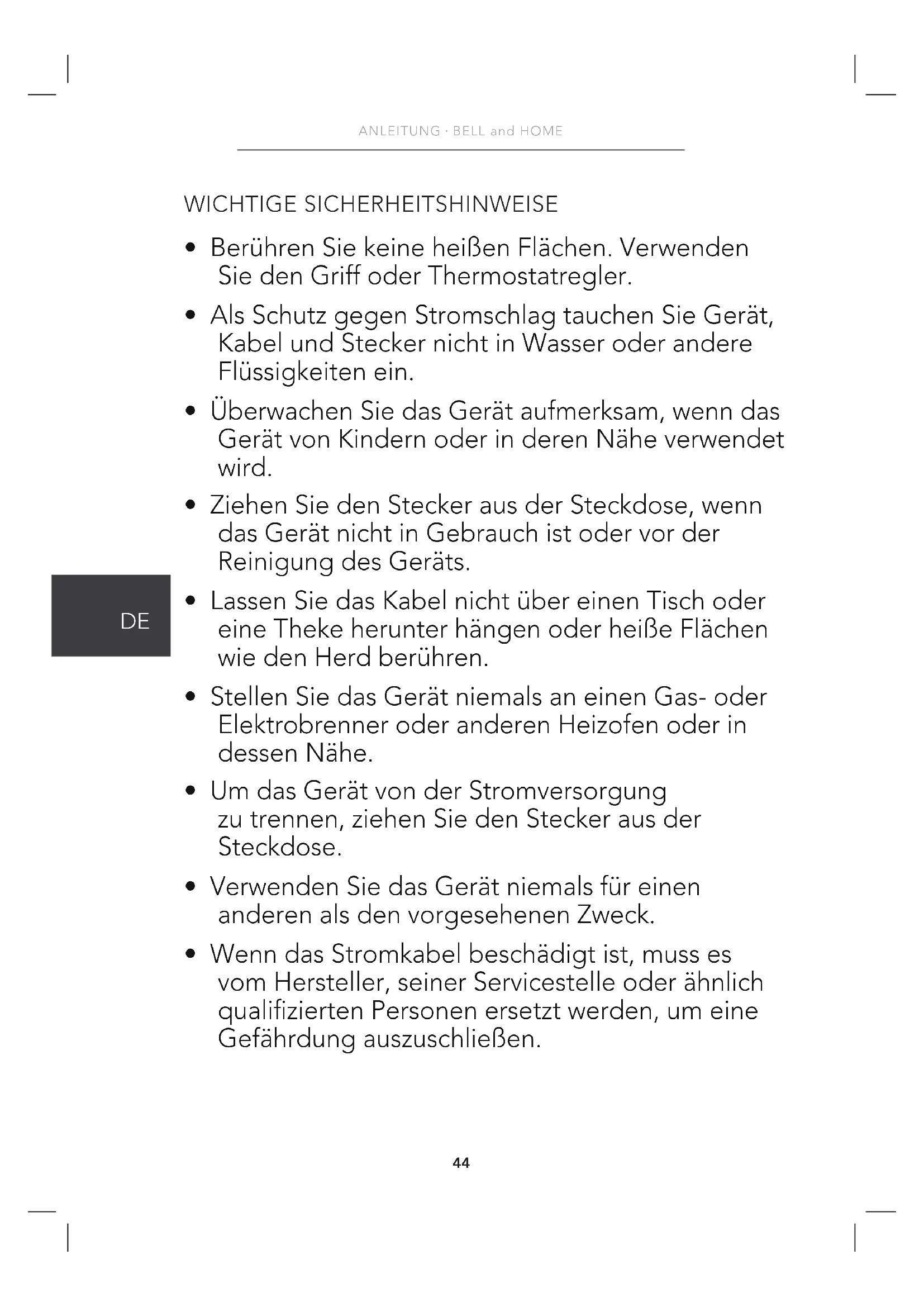 ANLEITUNG · BELL and HOME WICHTIGE SICHERHEITSHINWEISE