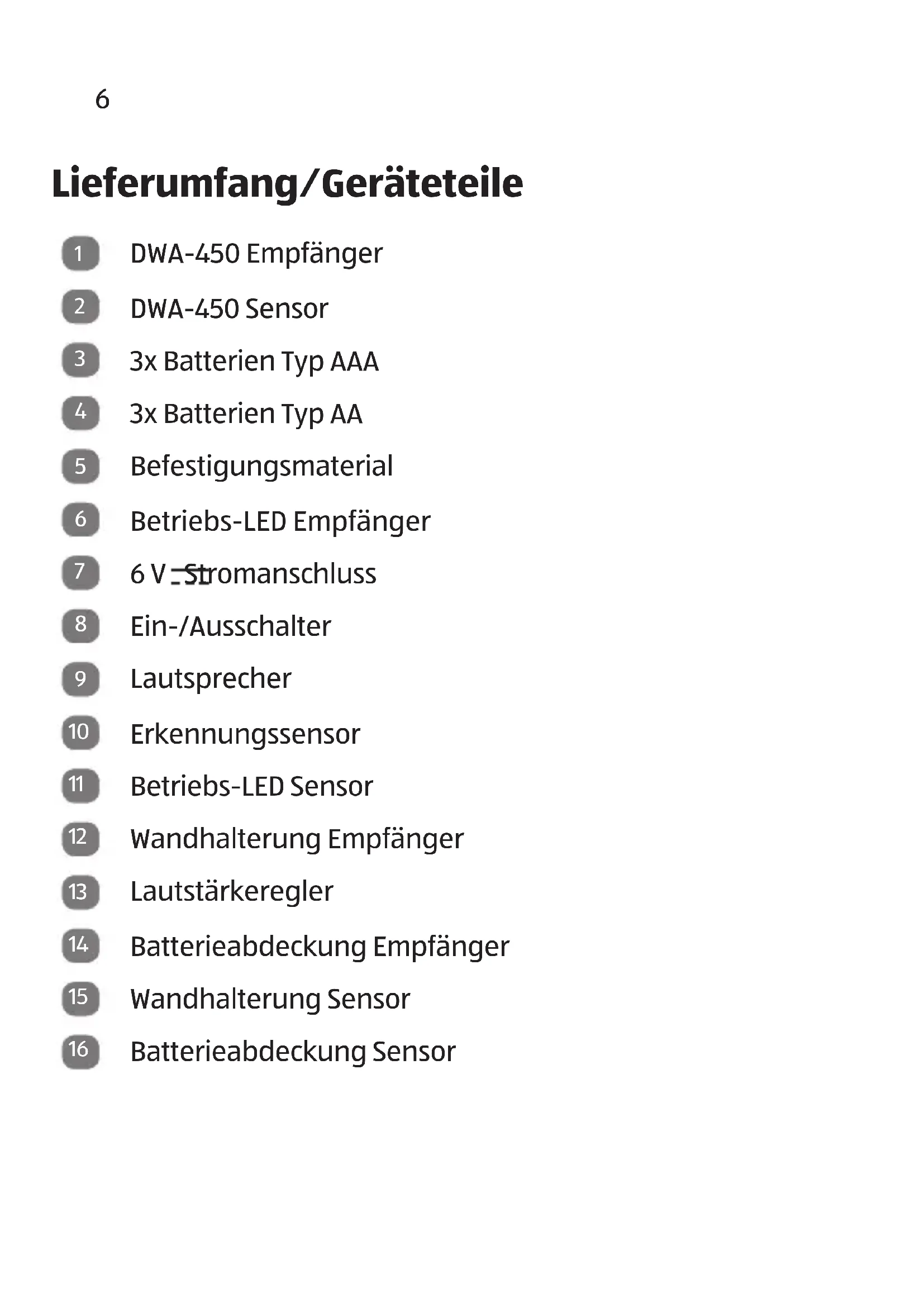 - Lieferumfang/Geräteteile p. 6