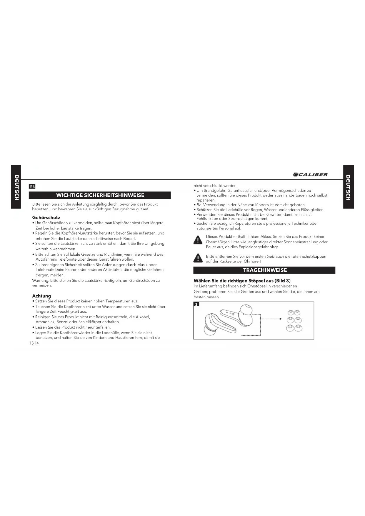 Laden Sie die Anleitung für Ihr Kopfhörer kostenlos im PDF-Format! Finden Sie Ihr Handbuch TWS100A - CALIBER und nehmen Sie Ihr elektronisches Gerät wieder in die Hand. Auf dieser Seite sind alle Dokumente veröffentlicht, die für die Verwendung Ihres Geräts notwendig sind. TWS100A von der Marke CALIBER.