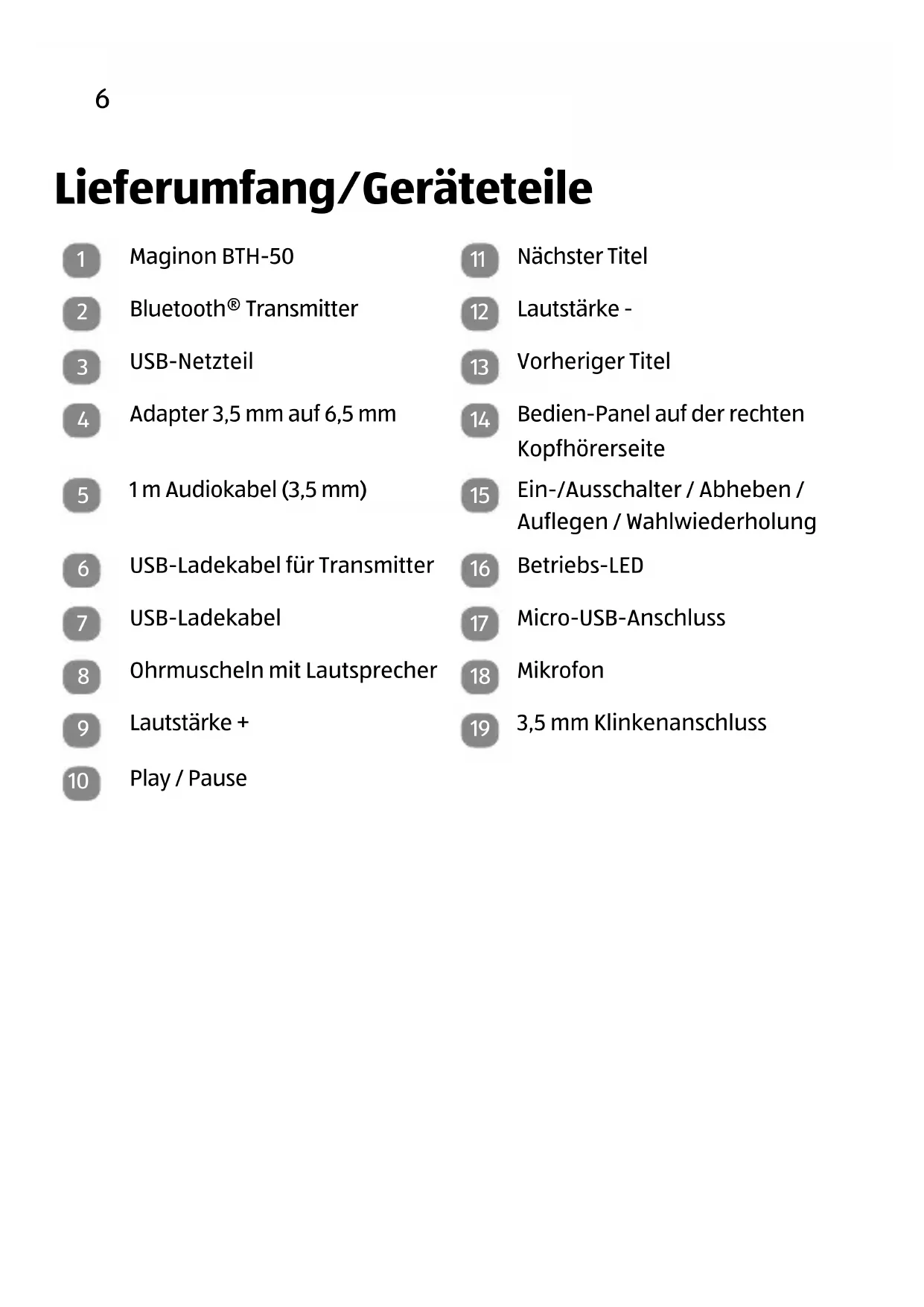 BTH50 - Kopfhörer Maginon - Kostenlose Bedienungsanleitung