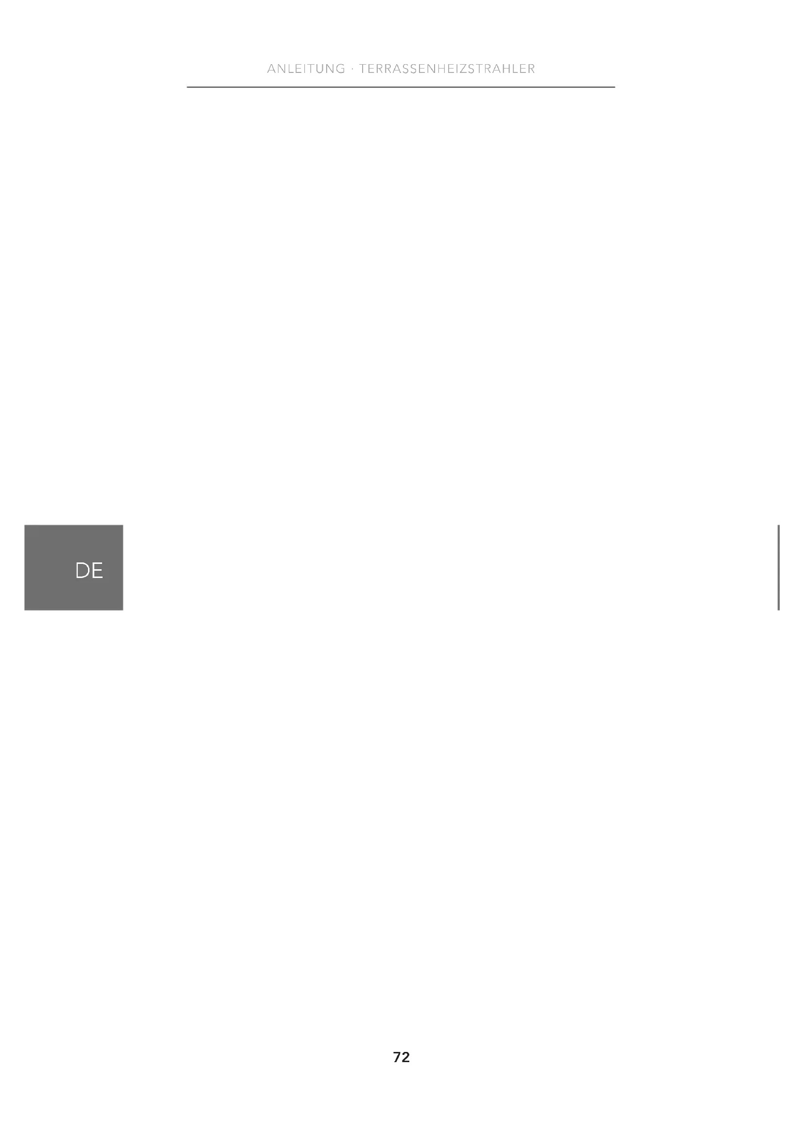 - In den ersten Minuten nach dem Einschalten können auf der Oberäche der Heizelemente zwei dunkle Punkte vorhanden sein. Dies ist normal und hat keinen Einuss auf die Leistung des Geräts.82 ANLEITUNG · TERRASSENHEIZSTRAHLER