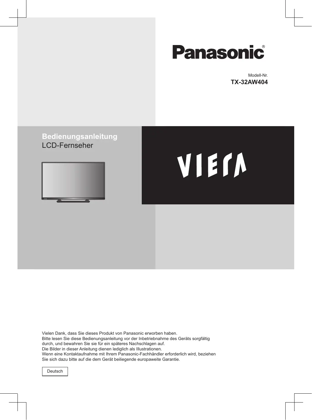 Laden Sie die Anleitung für Ihr Fernseher kostenlos im PDF-Format! Finden Sie Ihr Handbuch TX-32AW404 - PANASONIC und nehmen Sie Ihr elektronisches Gerät wieder in die Hand. Auf dieser Seite sind alle Dokumente veröffentlicht, die für die Verwendung Ihres Geräts notwendig sind. TX-32AW404 von der Marke PANASONIC.