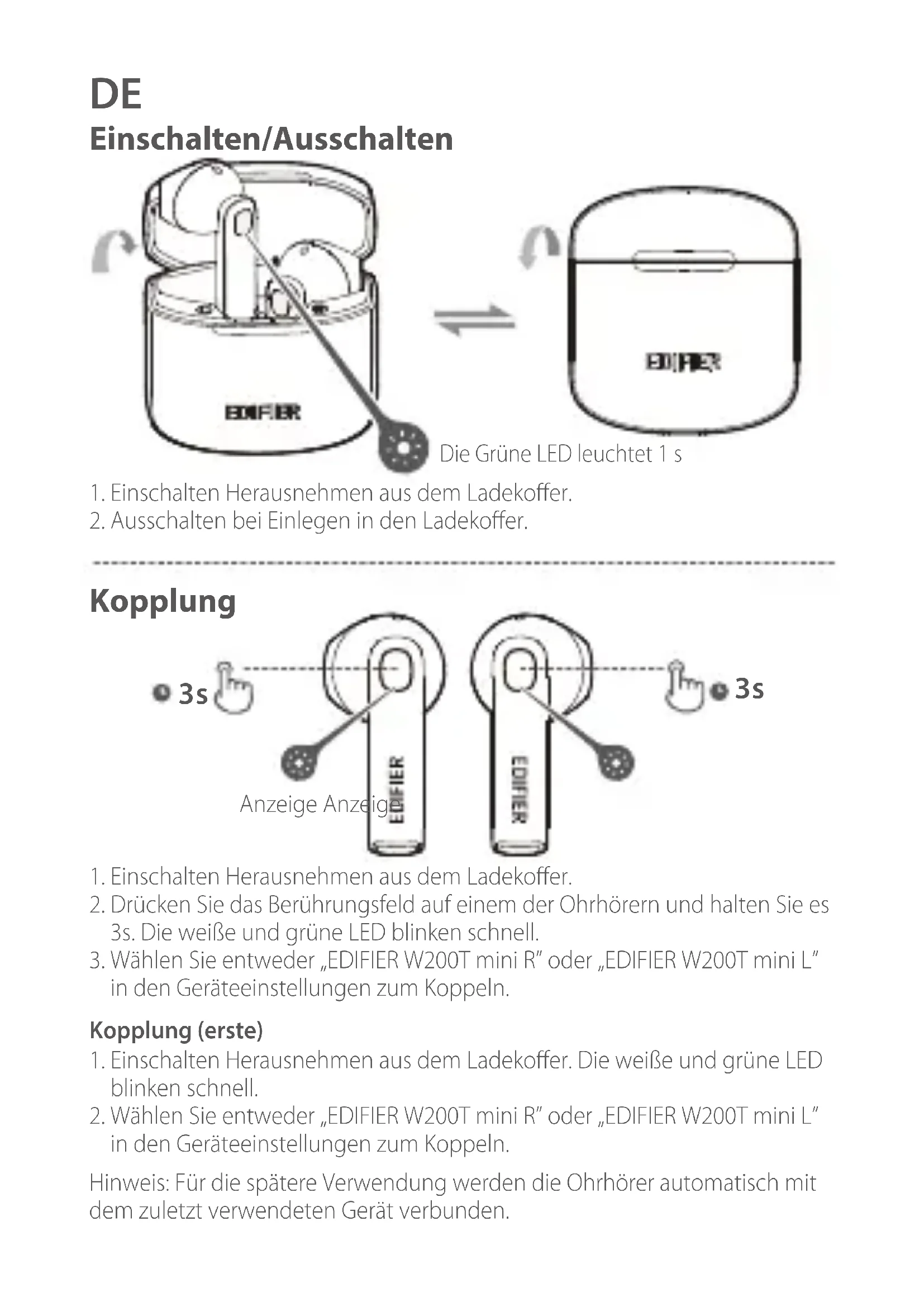 W200T mini - Ohrstöpsel EDIFIER - Kostenlose Bedienungsanleitung