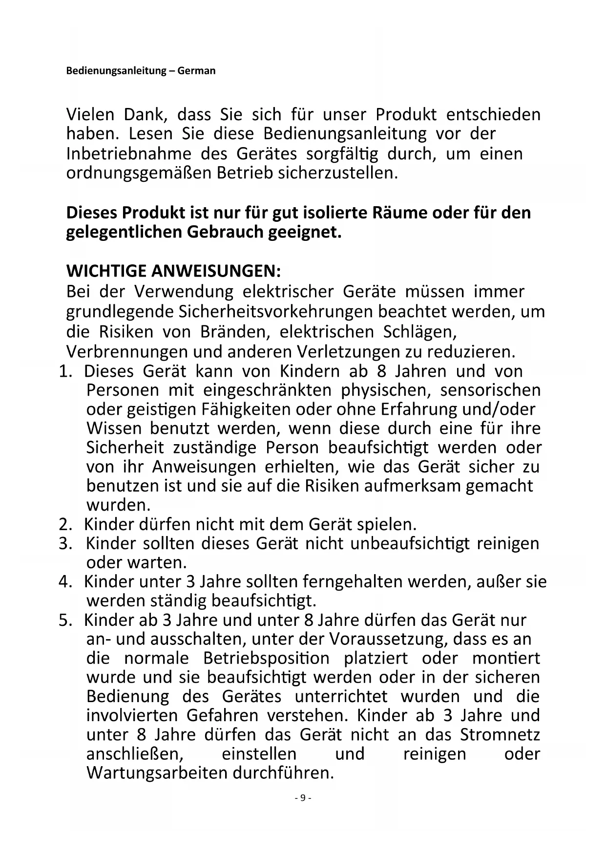 5. Kinder ab 3 Jahre und unter 8 Jahre dürfen das Gerät nur