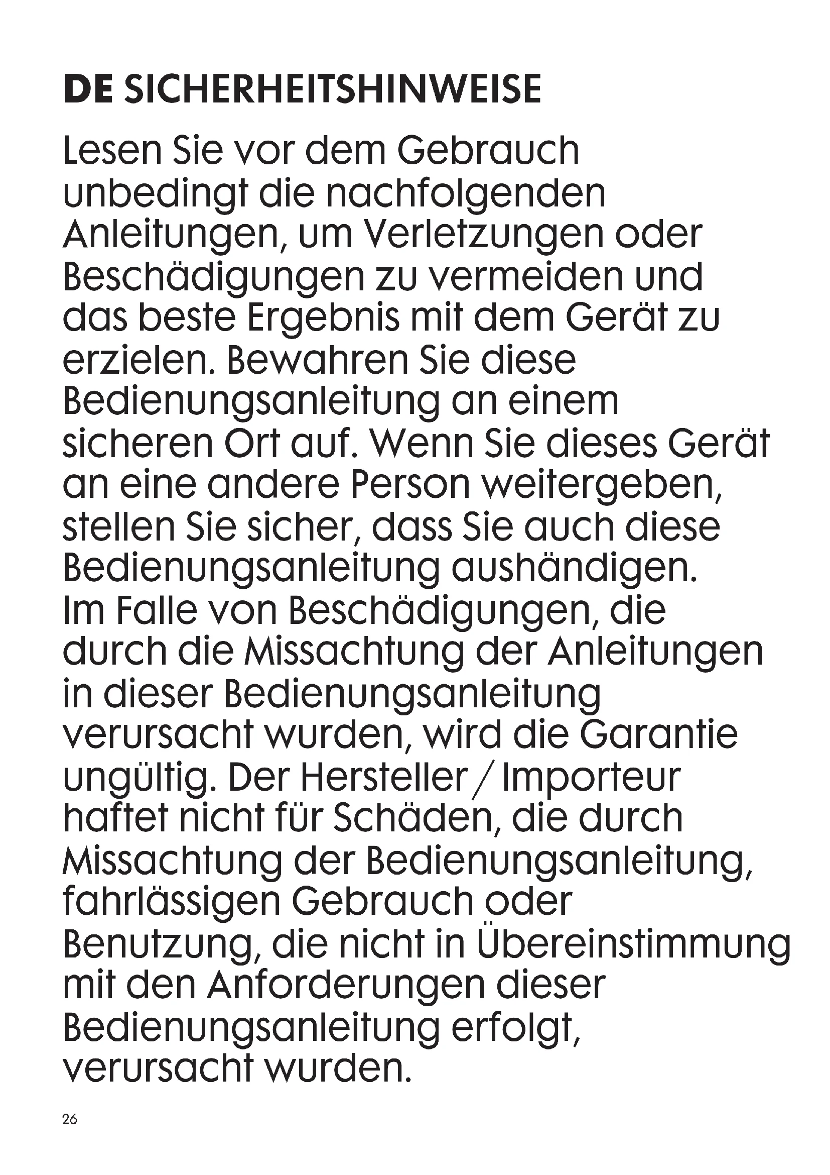 23. Benutzen Sie das Gerät nicht im