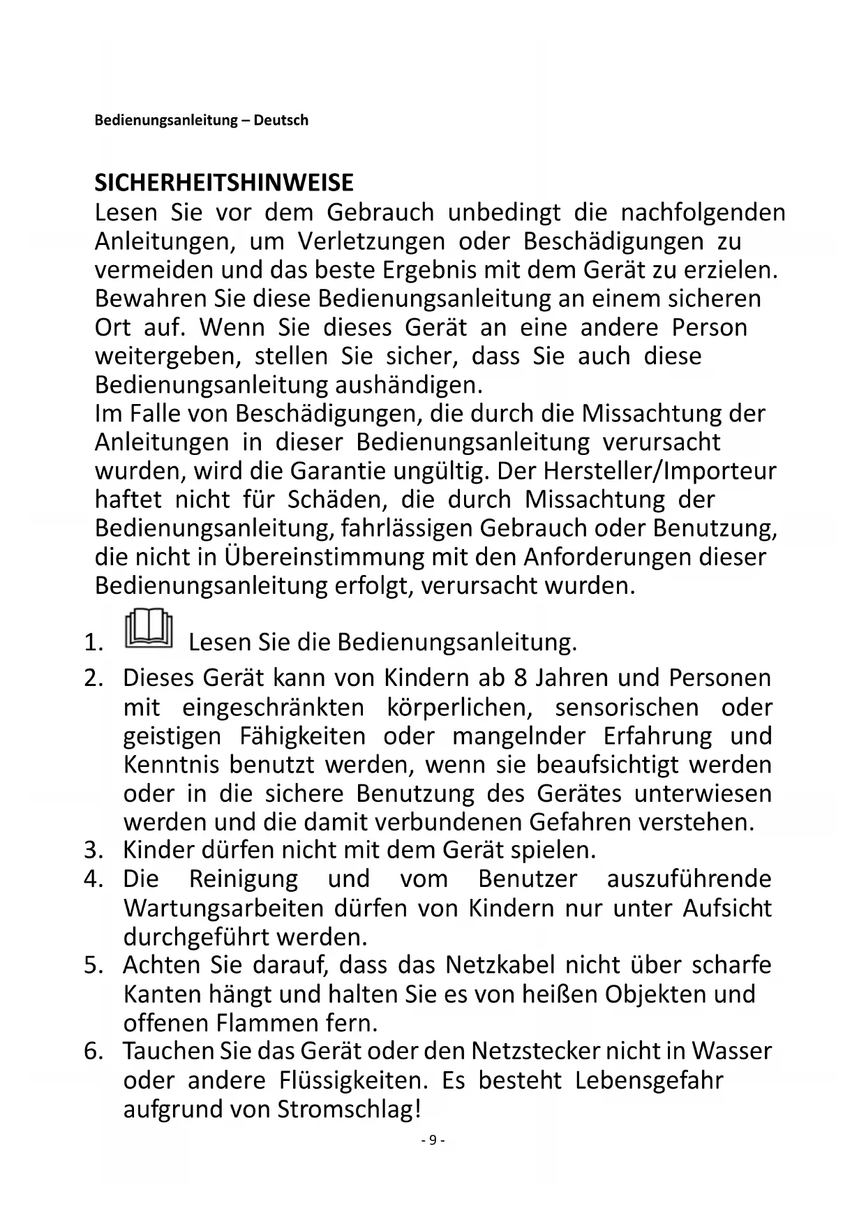 10. Dieses Gerät ist ausschließlich für den privaten