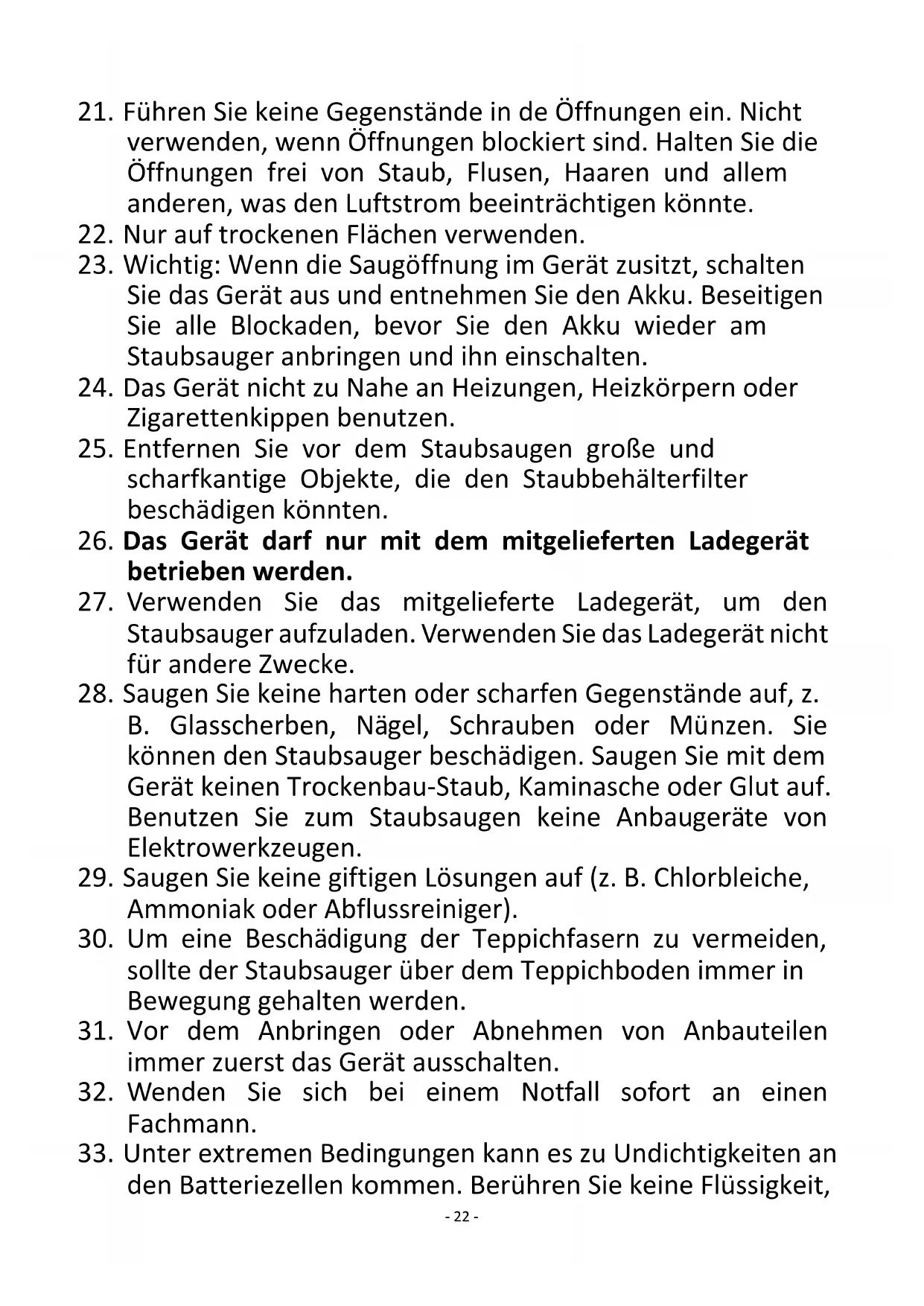 28. Saugen Sie keine harten oder scharfen Gegenstände auf, z.