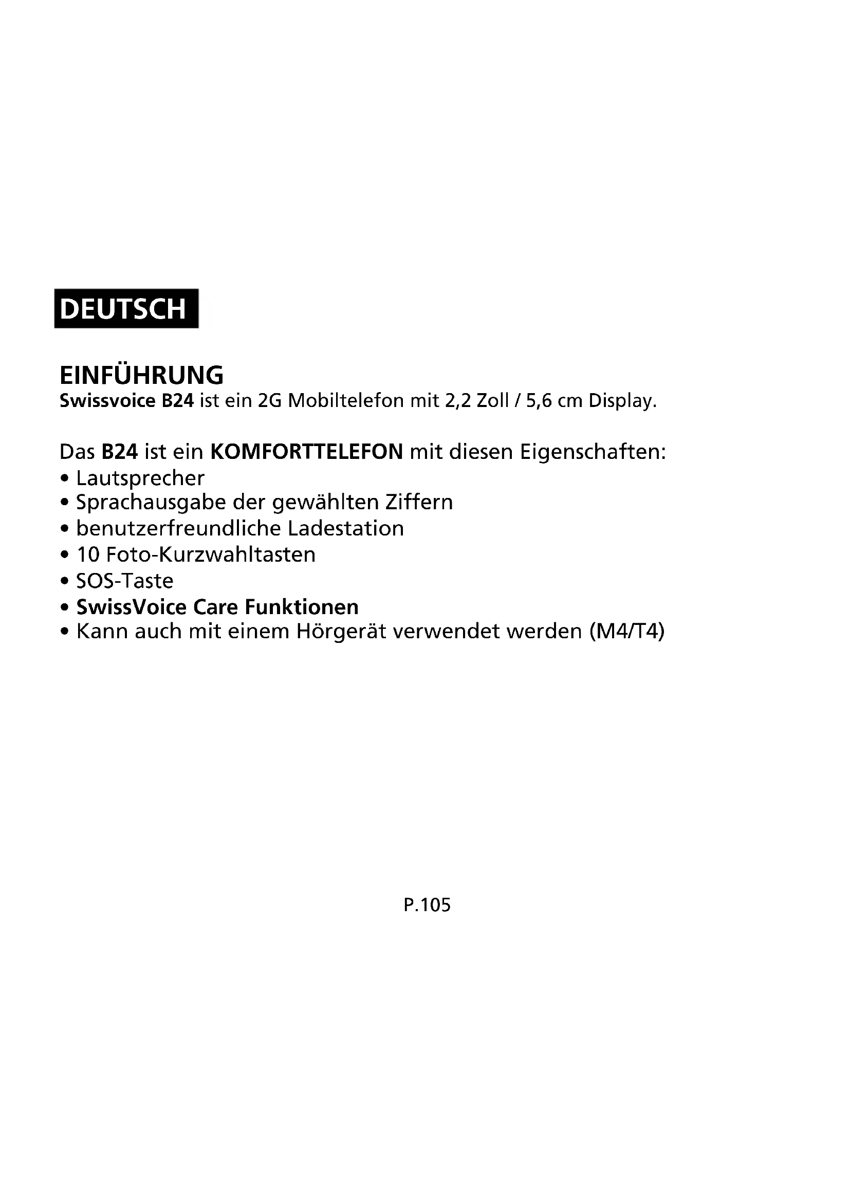 BEDIENUNGSANLEITUNG B24 SWISSVOICE