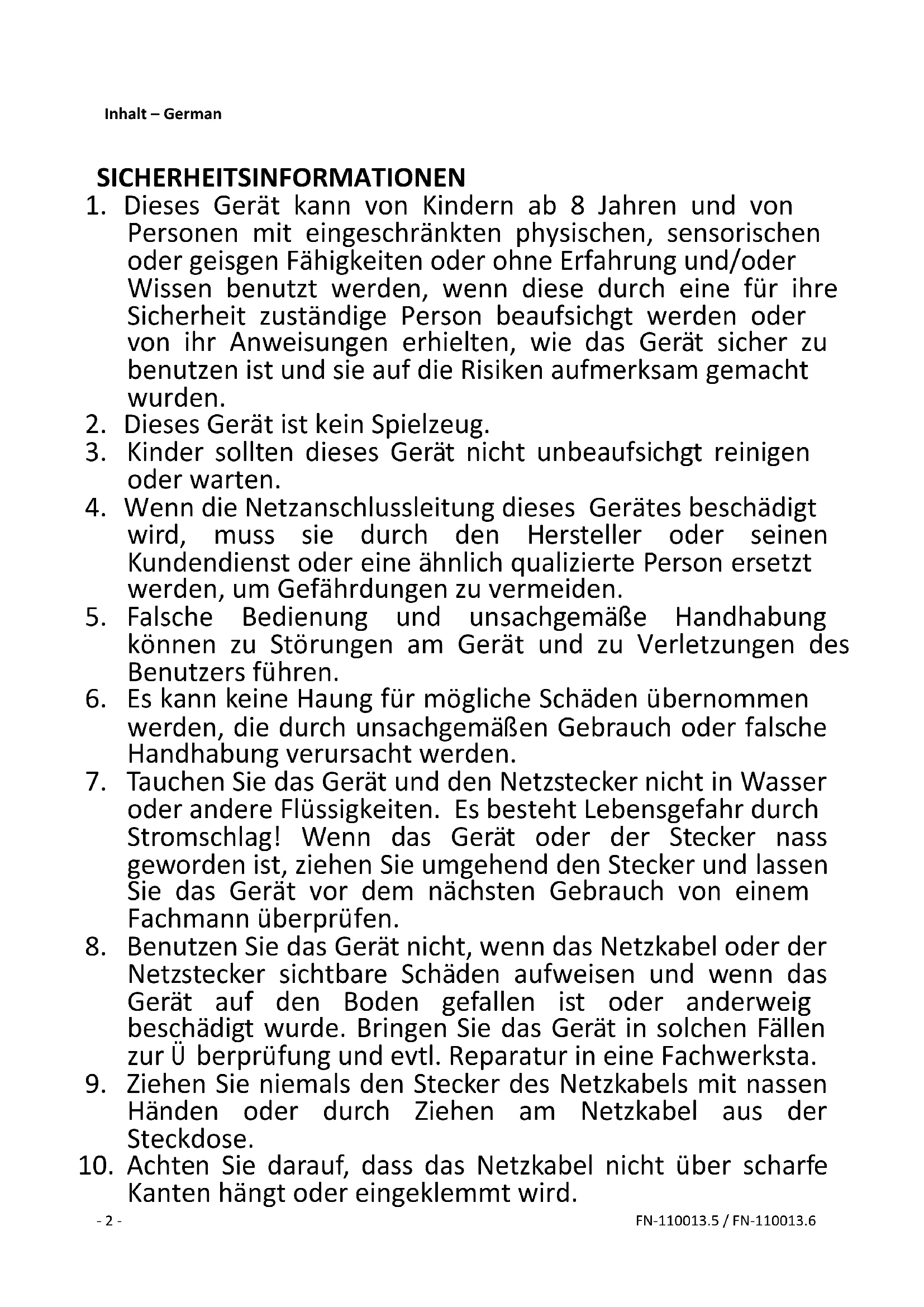 getrennt ist, bevor Sie das Schutzgitter abnehmen!- 4 - FN-110013.5 / FN-110013.6