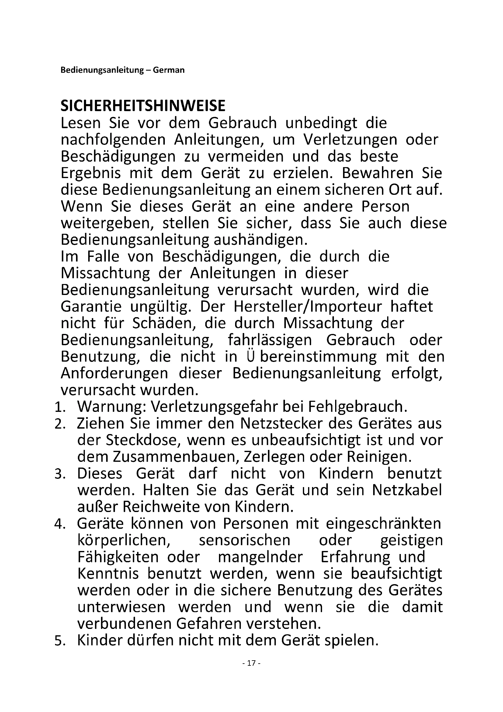 5. Kinder dürfen nicht mit dem Gerät spielen.- 18 -