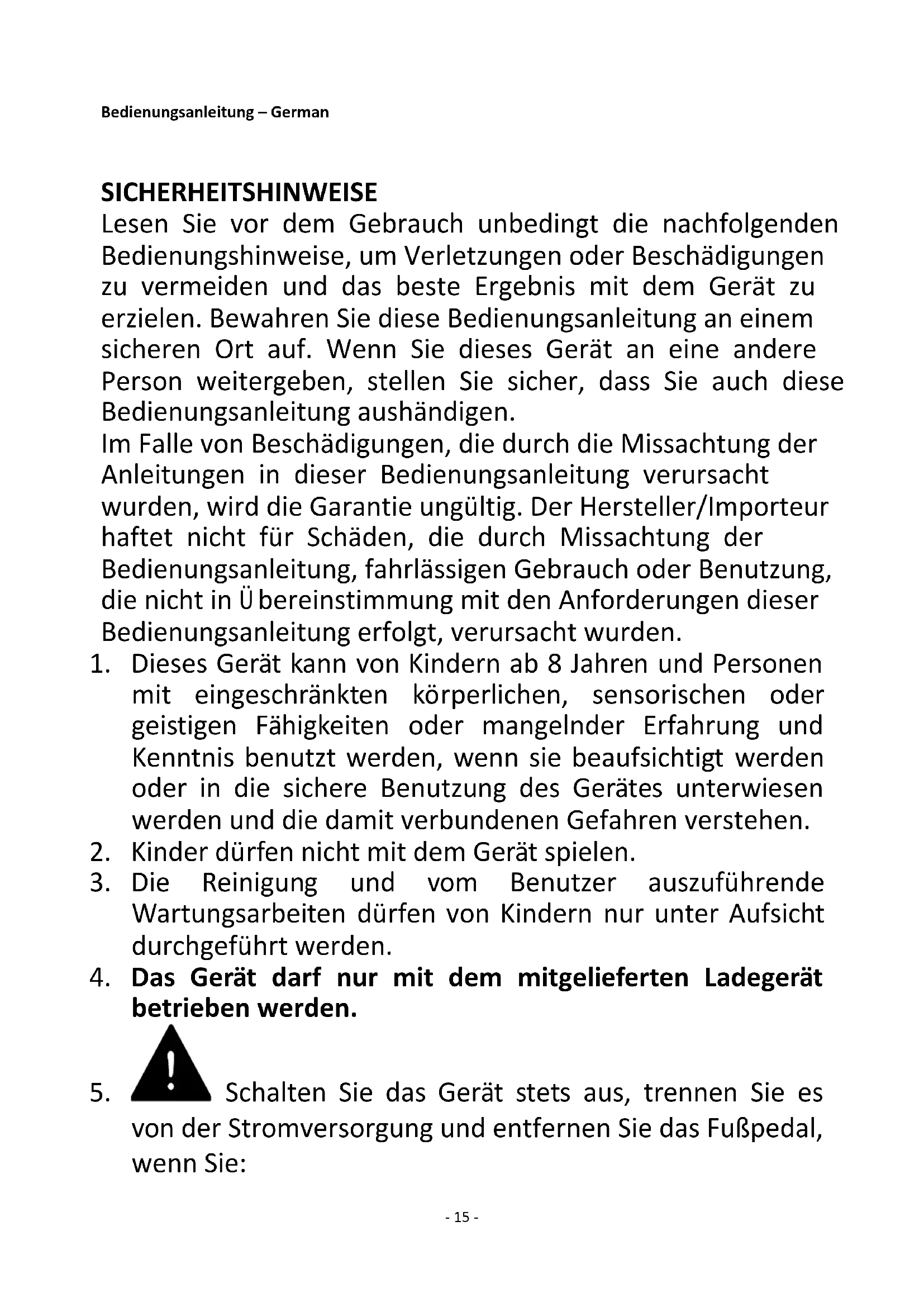 12. Dieses Gerät ist nicht für den gewerblichen Gebrauch