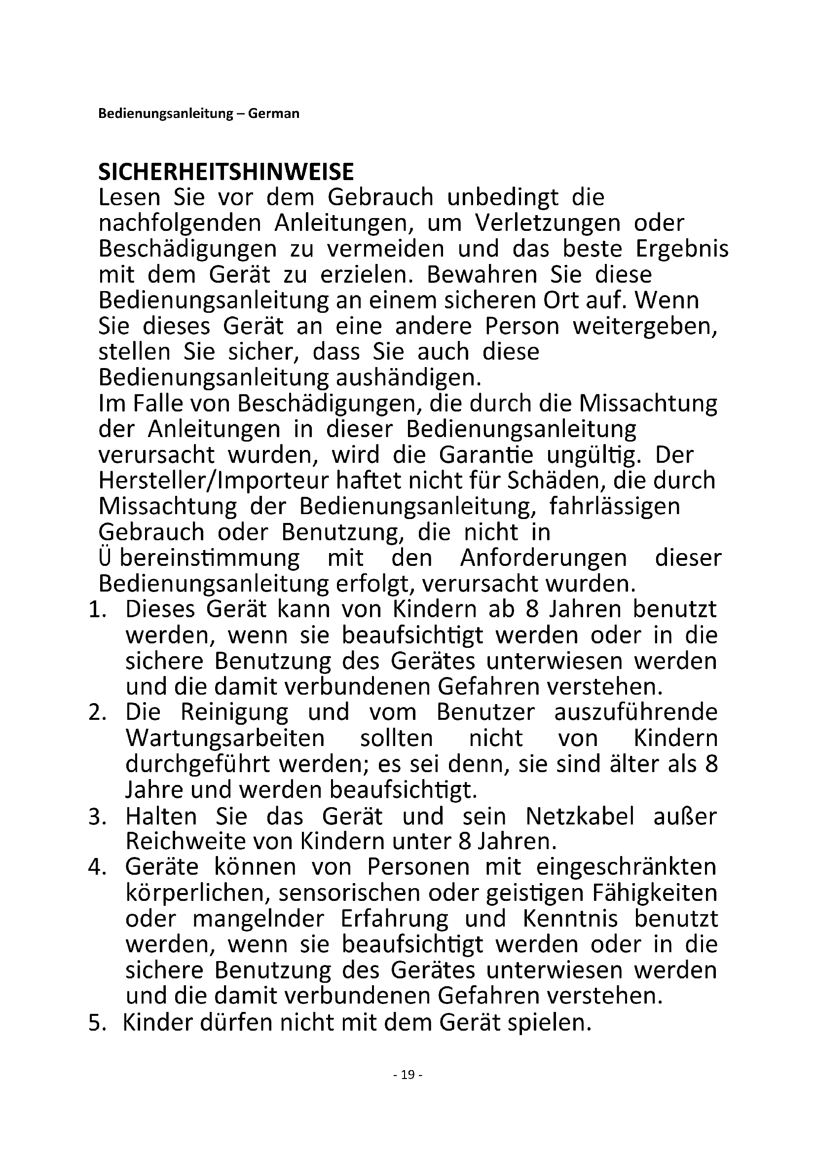 5. Kinder dürfen nicht mit dem Gerät spielen.- 20 -