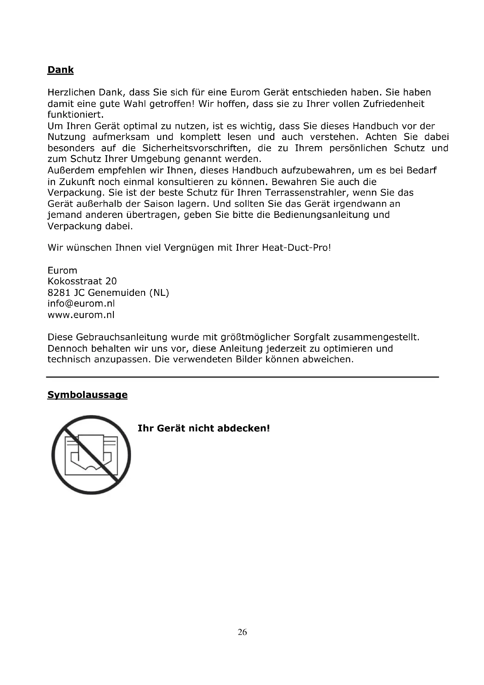 BEDIENUNGSANLEITUNG HeatDuctPro 15kW Eurom