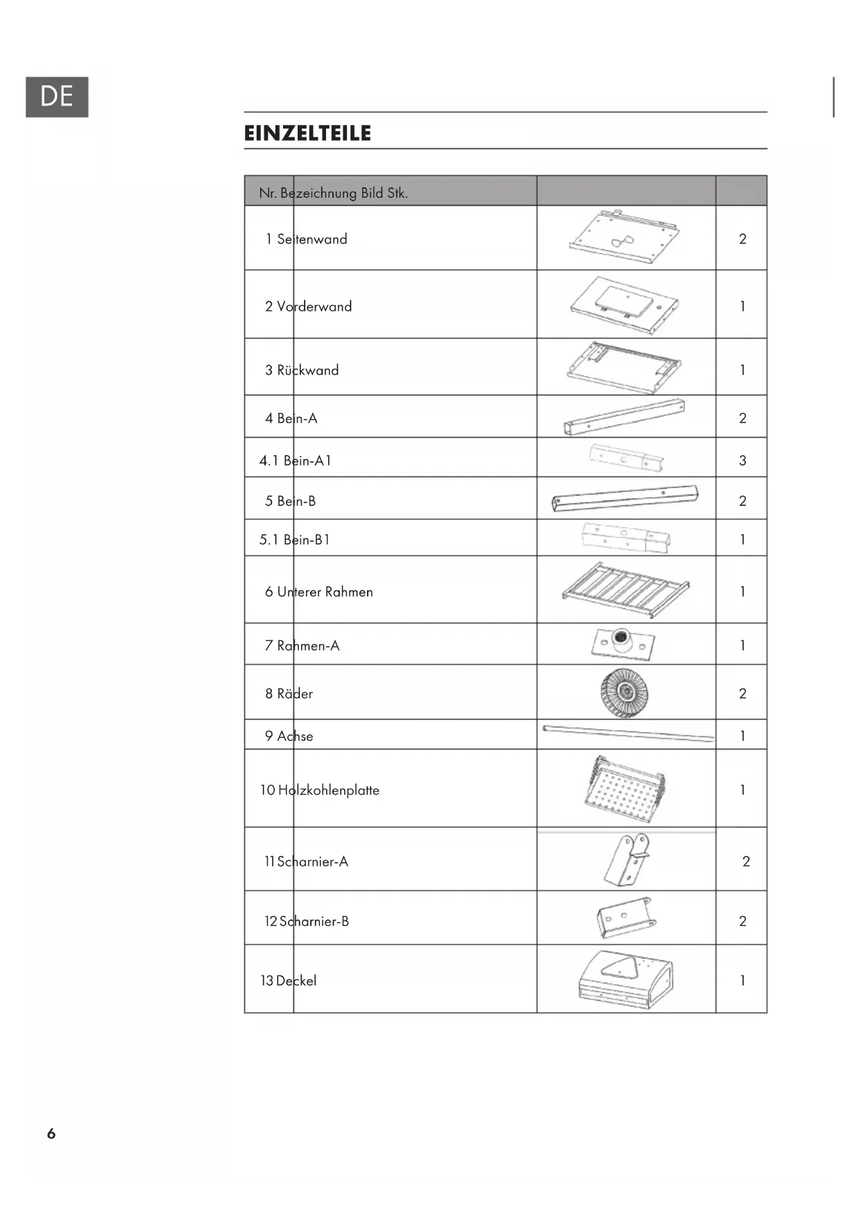 - Der Holzkohlegrill ist nur zur Nutzung im Freien bestimmt. Nicht in geschlossenen Räumen benutzen!
