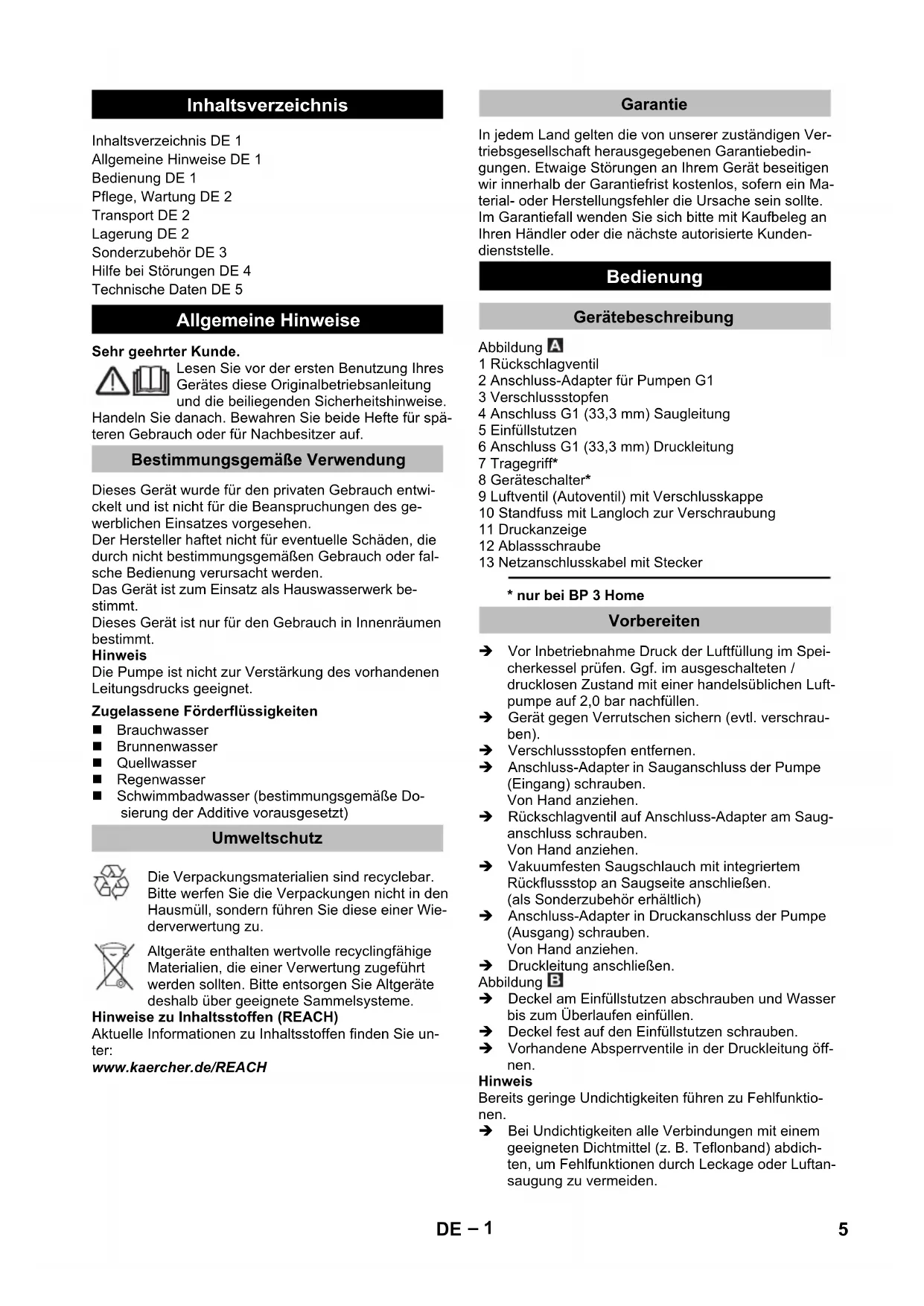 BP 3 Home - Pumpe Kärcher - Kostenlose Bedienungsanleitung