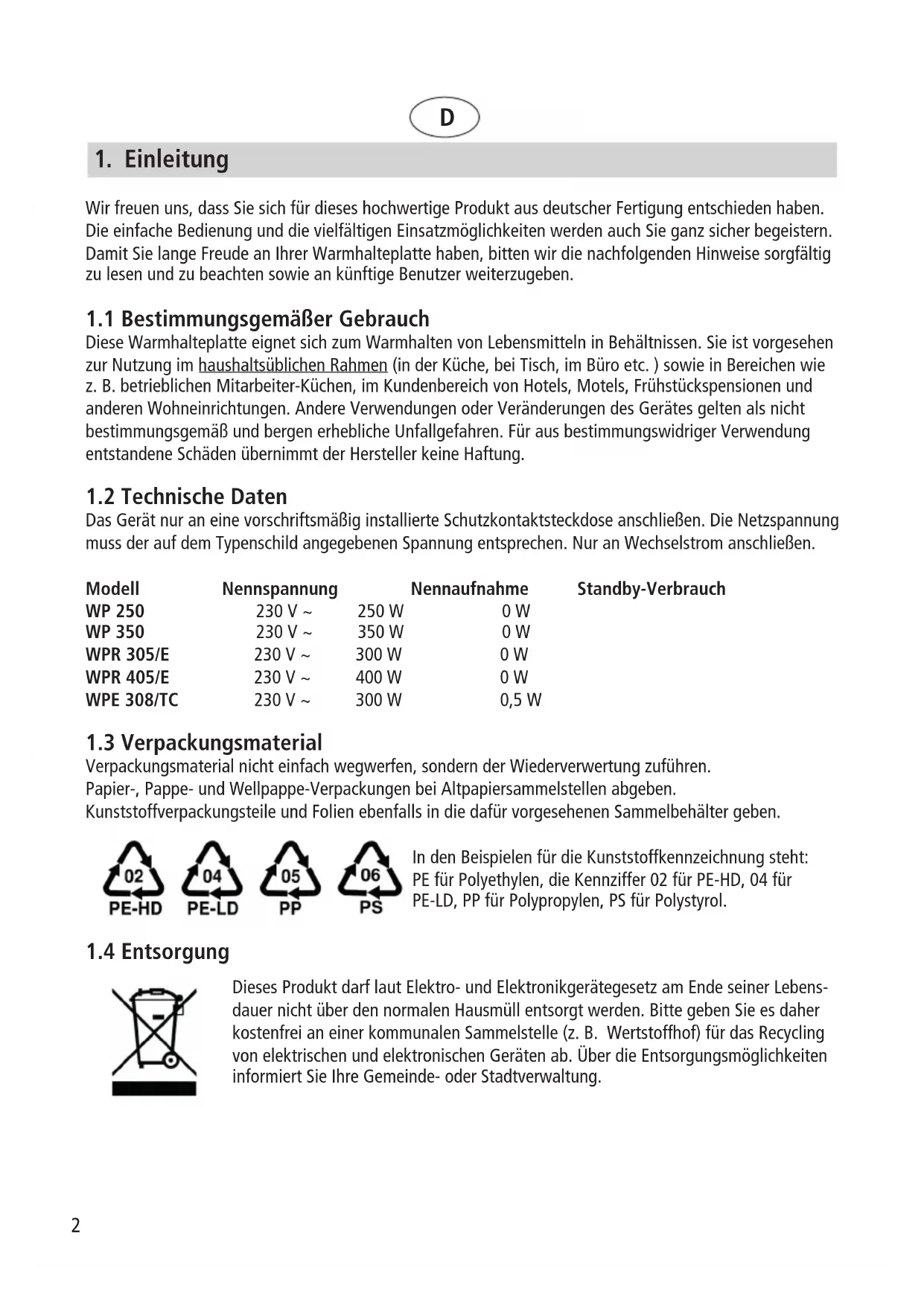 Diese Warmhalteplatte eignet sich zum Warmhalten von Lebensmitteln in Behältnissen. Sie ist vorgesehen zur Nutzung im haushaltsüblichen Rahmen (in der Küche, bei Tisch, im Büro etc. ) sowie in Bereichen wie z. B. betrieblichen Mitarbeiter-Küchen, im Kundenbereich von Hotels, Motels, Frühstückspensionen und anderen Wohneinrichtungen. Andere Verwendungen oder Veränderungen des Gerätes gelten als nicht bestimmungsgemäß und bergen erhebliche Unfallgefahren. Für aus bestimmungswidriger Verwendung entstandene Schäden übernimmt der Hersteller keine Haftung.