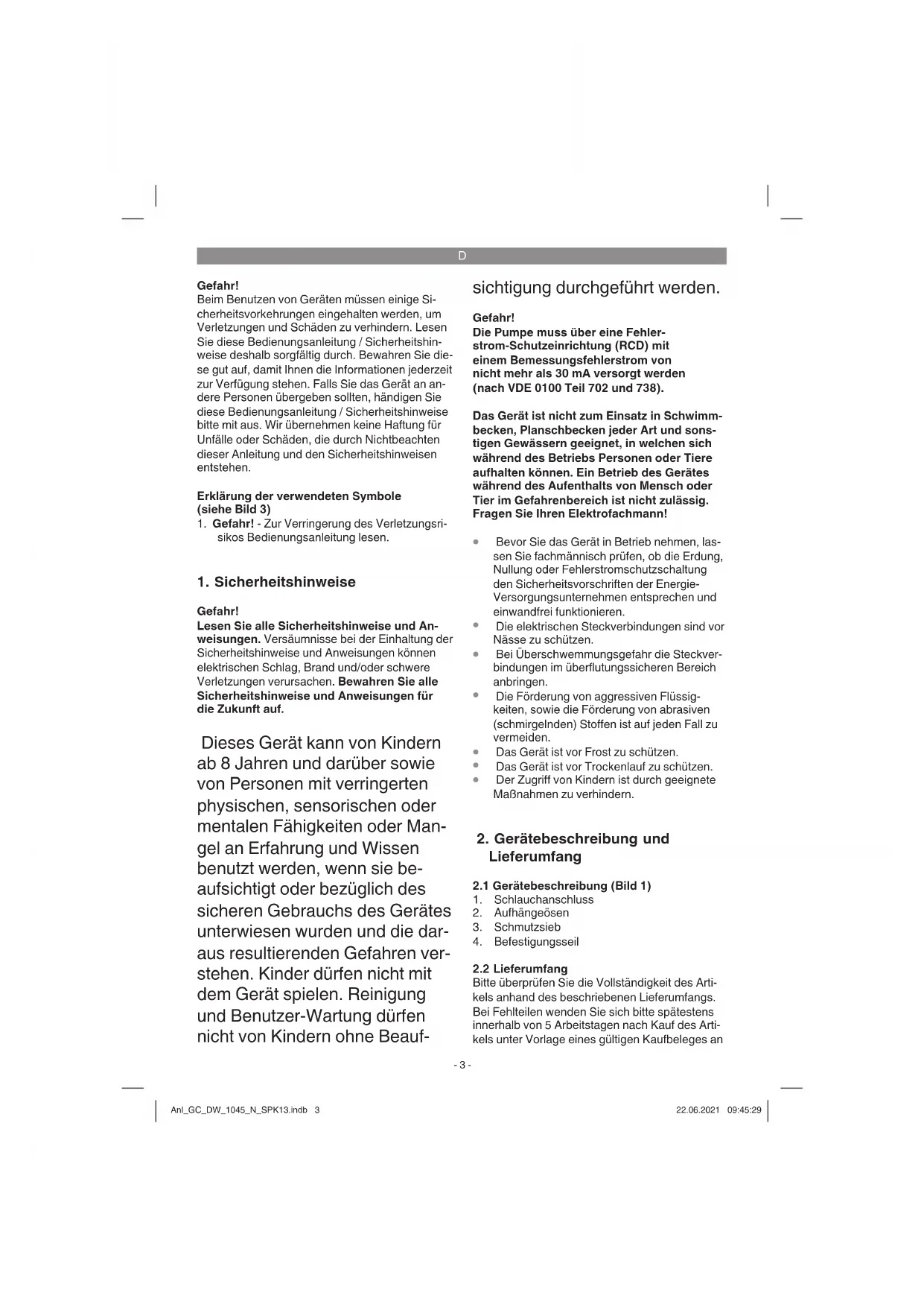 Bitte überprüfen Sie die Vollständigkeit des Arti- kels anhand des beschriebenen Lieferumfangs. Bei Fehlteilen wenden Sie sich bitte spätestens innerhalb von 5 Arbeitstagen nach Kauf des Arti- kels unter Vorlage eines gültigen Kaufbeleges an Anl_GC_DW_1045_N_SPK13.indb 3Anl_GC_DW_1045_N_SPK13.indb 3 22.06.2021 09:45:2922.06.2021 09:45:29D