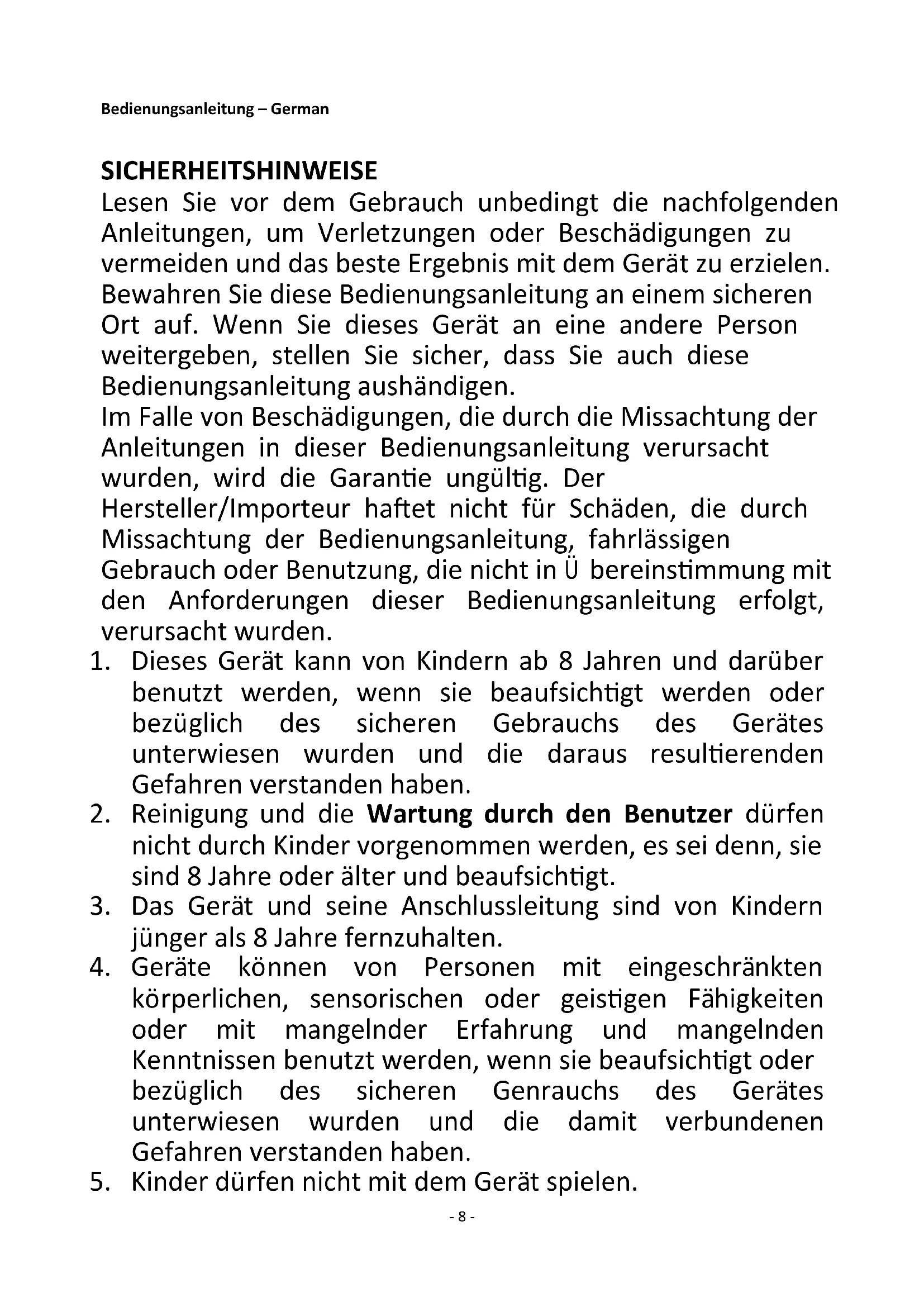 5. Kinder dürfen nicht mit dem Gerät spielen.- 9 -
