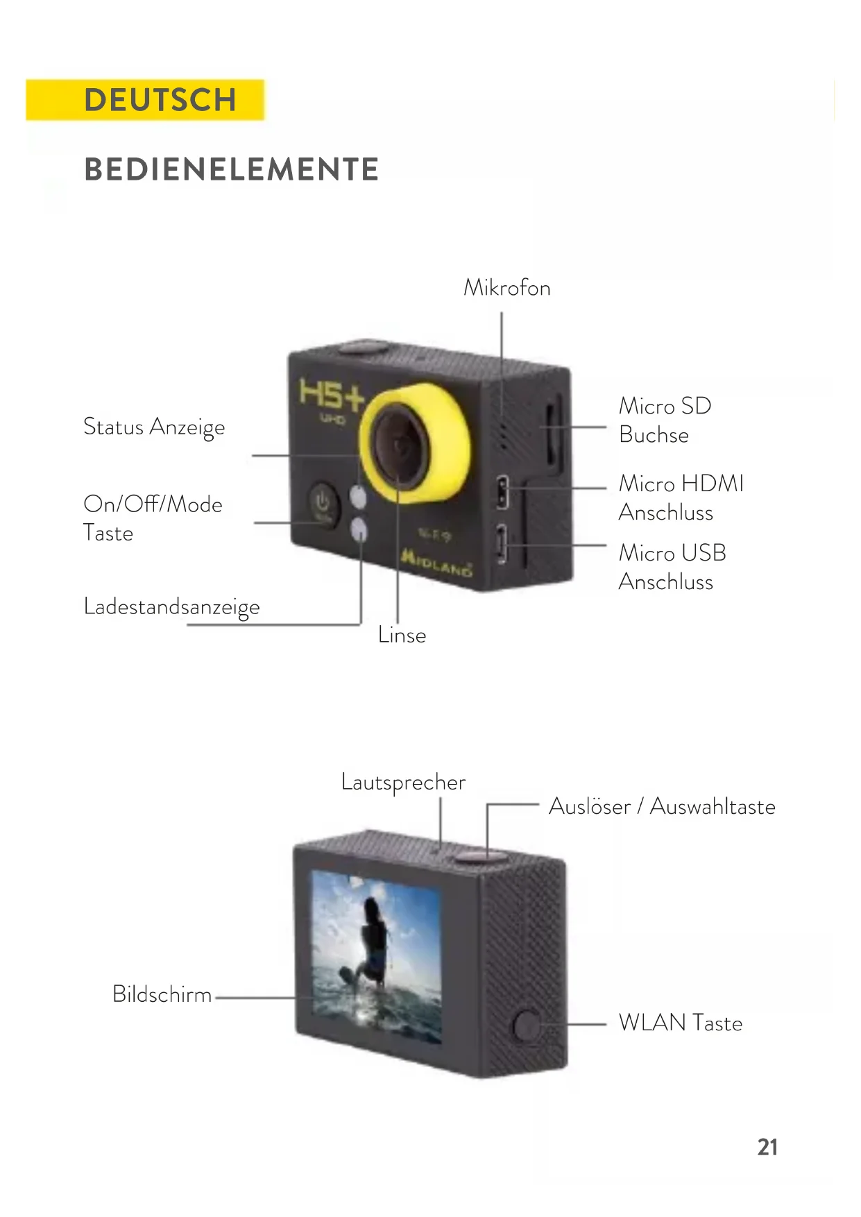 Laden Sie die Anleitung für Ihr Sportkamera kostenlos im PDF-Format! Finden Sie Ihr Handbuch H5+ - MIDLAND und nehmen Sie Ihr elektronisches Gerät wieder in die Hand. Auf dieser Seite sind alle Dokumente veröffentlicht, die für die Verwendung Ihres Geräts notwendig sind. H5+ von der Marke MIDLAND.