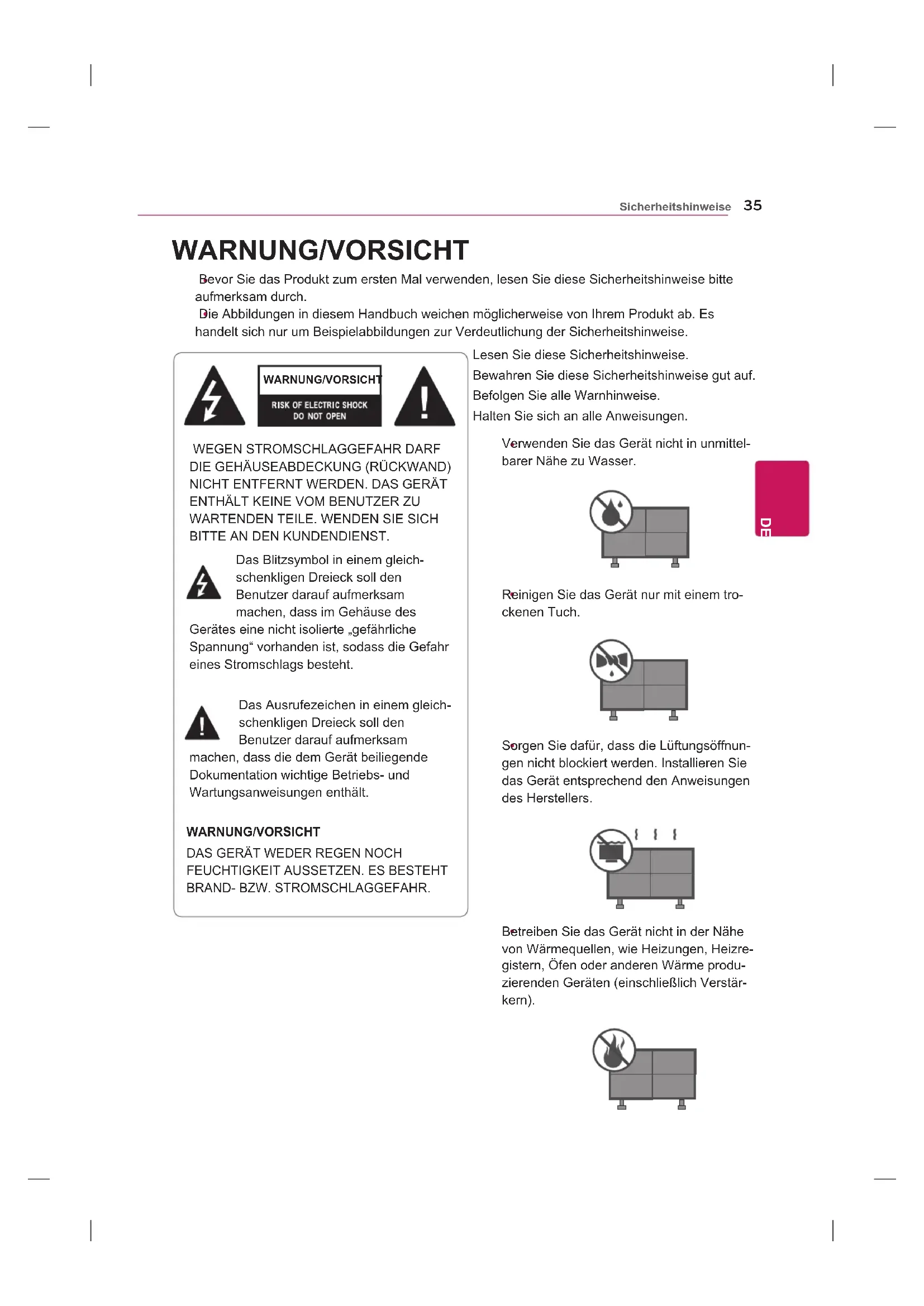 Betreiben Sie das Gerät nicht in der Nähe von Wärmequellen, wie Heizungen, Heizre- gistern, Öfen oder anderen Wärme produ- zierenden Geräten (einschließlich Verstär- kern). WARNUNG/VORSICHT36 Sicherheitshinweise DEU DEUTSCH