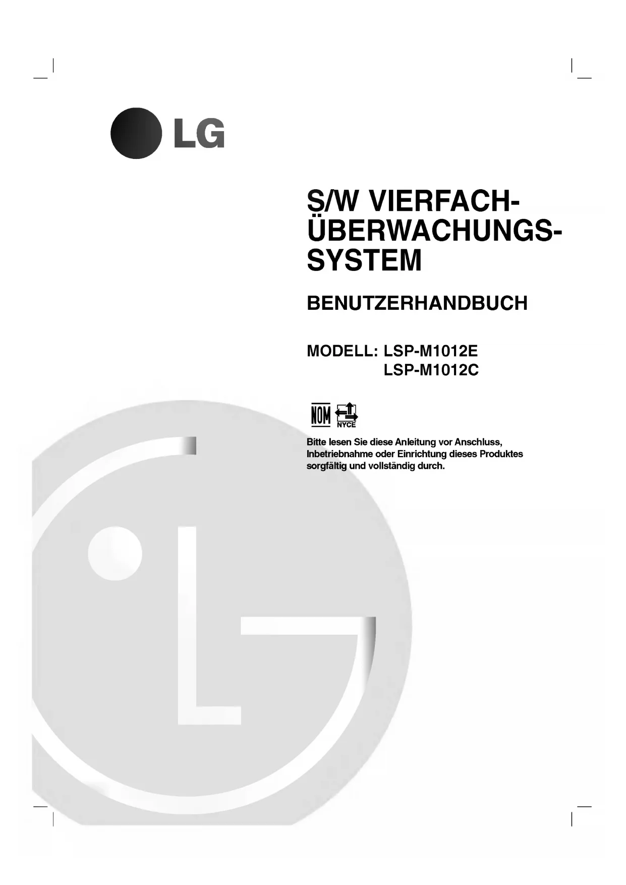 MOVIMENTO Omodeloeas especificacoes estao sujeitos alteracoes semaviso previo.S/W VIERFACH- UBERWACHUNGS- SYSTEM BENUTZERHANDBUCH MODELL: LSP-M1012E LSP-M1012C BittelesenSiediese Anleitung vorAnschluss,Inbetriebnahmeoder Einrichtung diesesProduktes sorgfaltig und vollstandig durch.2VORSICHT:UM STROMSCHLAGE VERMEIDEN, ABDECKUNG (BZW. RUCKSEITE)