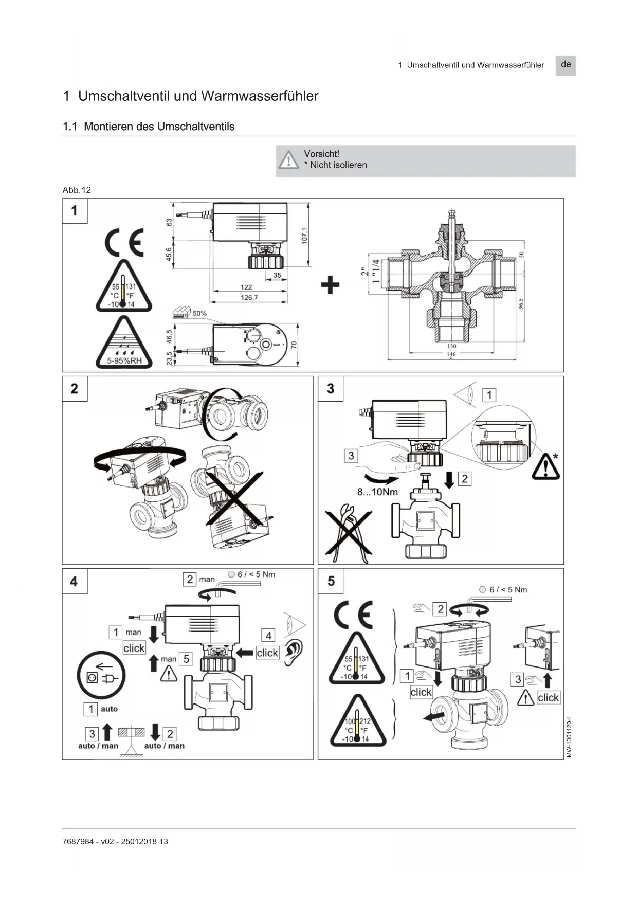 - Nicht isolieren Abb.12 MW-1001120-1 1 Umschaltventil und Warmwasserfühler