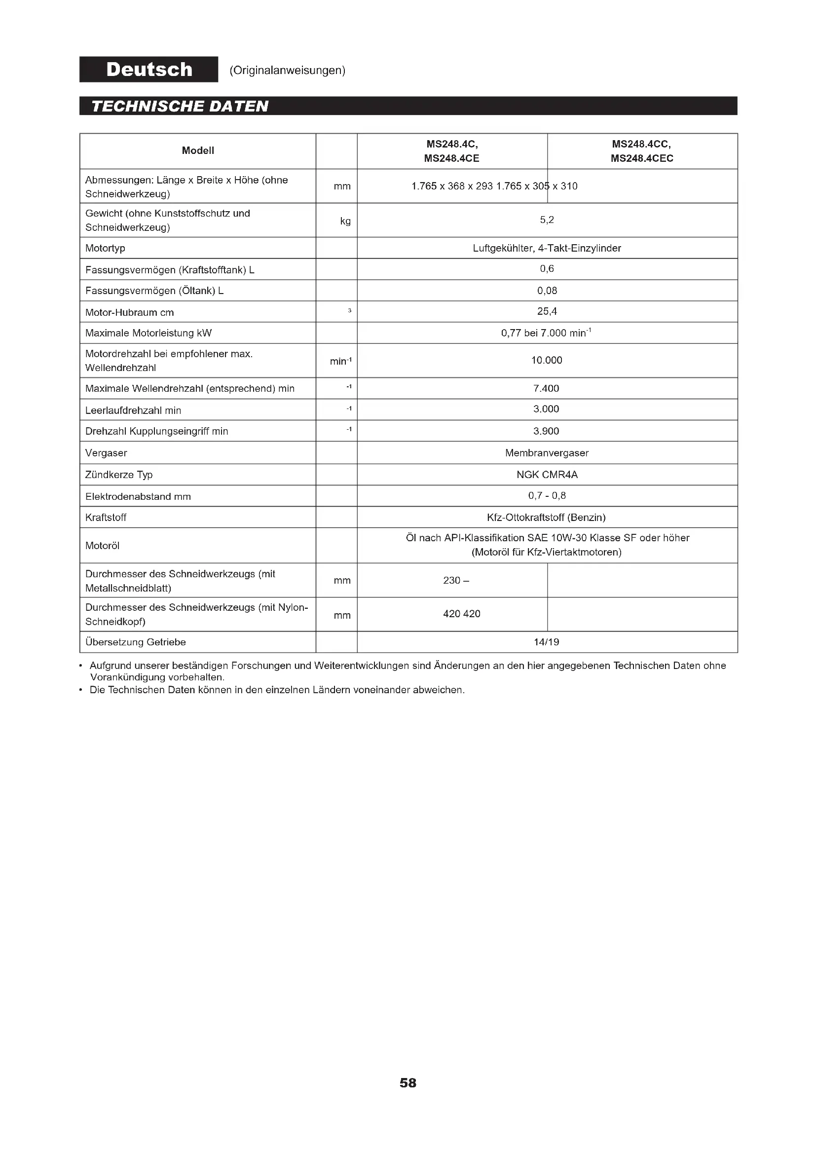 | Modell | MS248.4C, MS248.4CE | MS248.4CC, MS248.4CEC | |