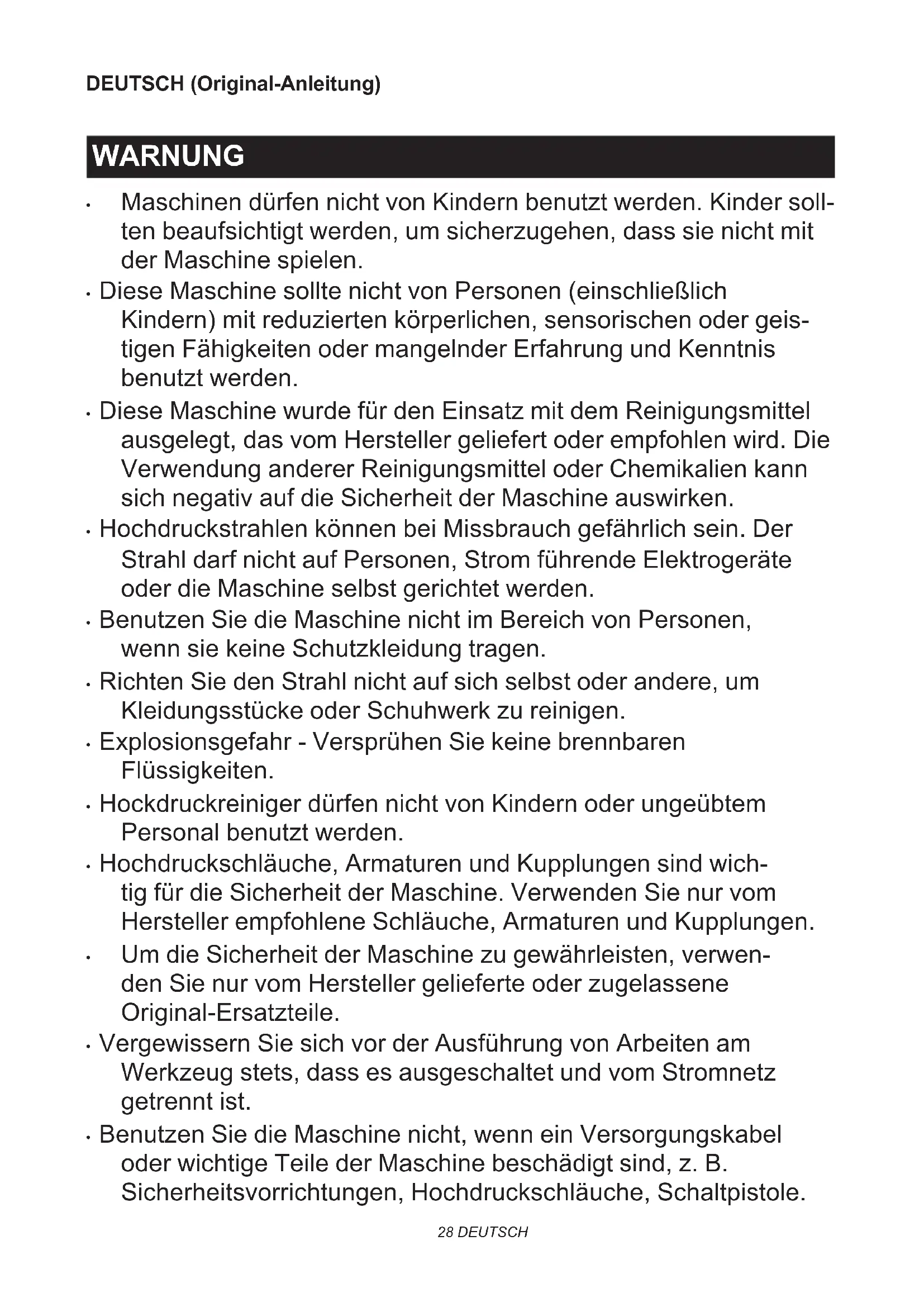 Hochdruckreiniger BETRIEBSANLEITUNG 28
