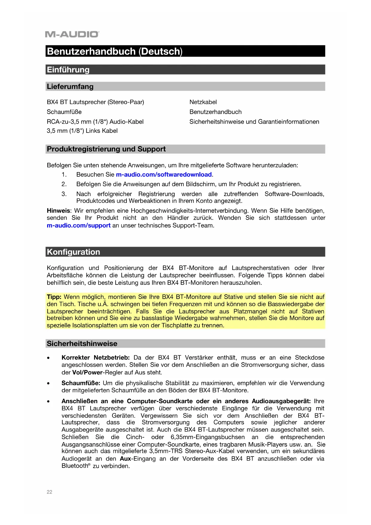 BEDIENUNGSANLEITUNG BX4 BT M-AUDIO