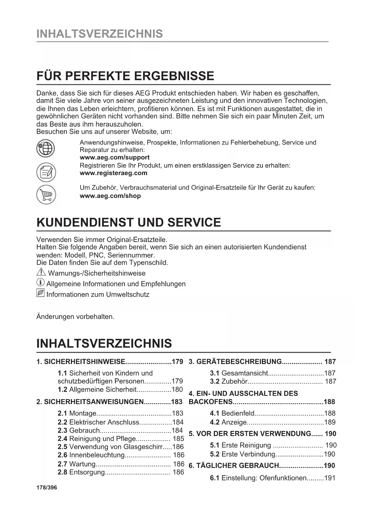 178/396 INHALTSVERZEICHNIS6.2 Einstellung: Mikrowellengarfunktionen..................191
