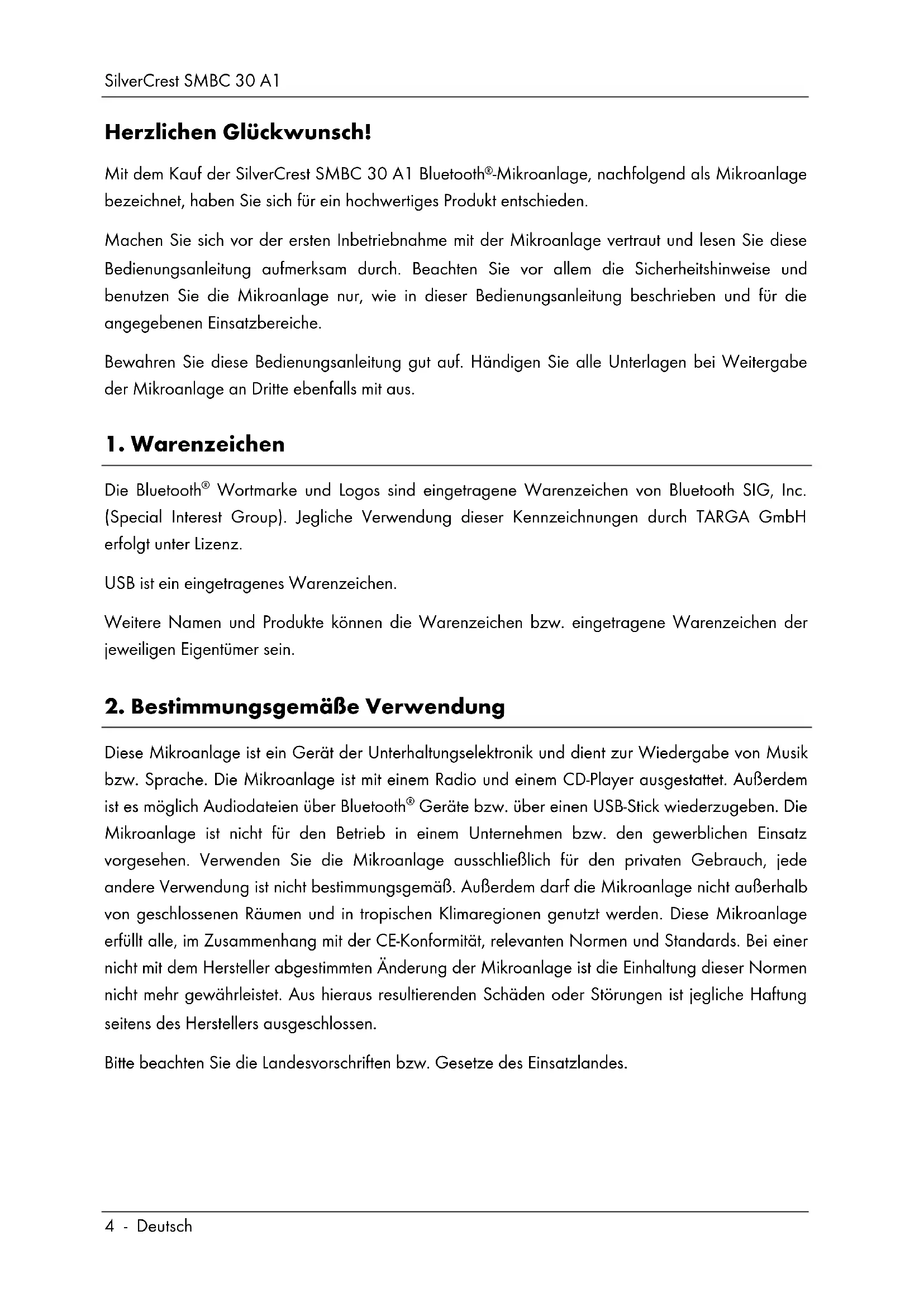 Herzlichen Glückwunsch! Mit dem Kauf der SilverCrest SMBC 30 A1 Bluetooth