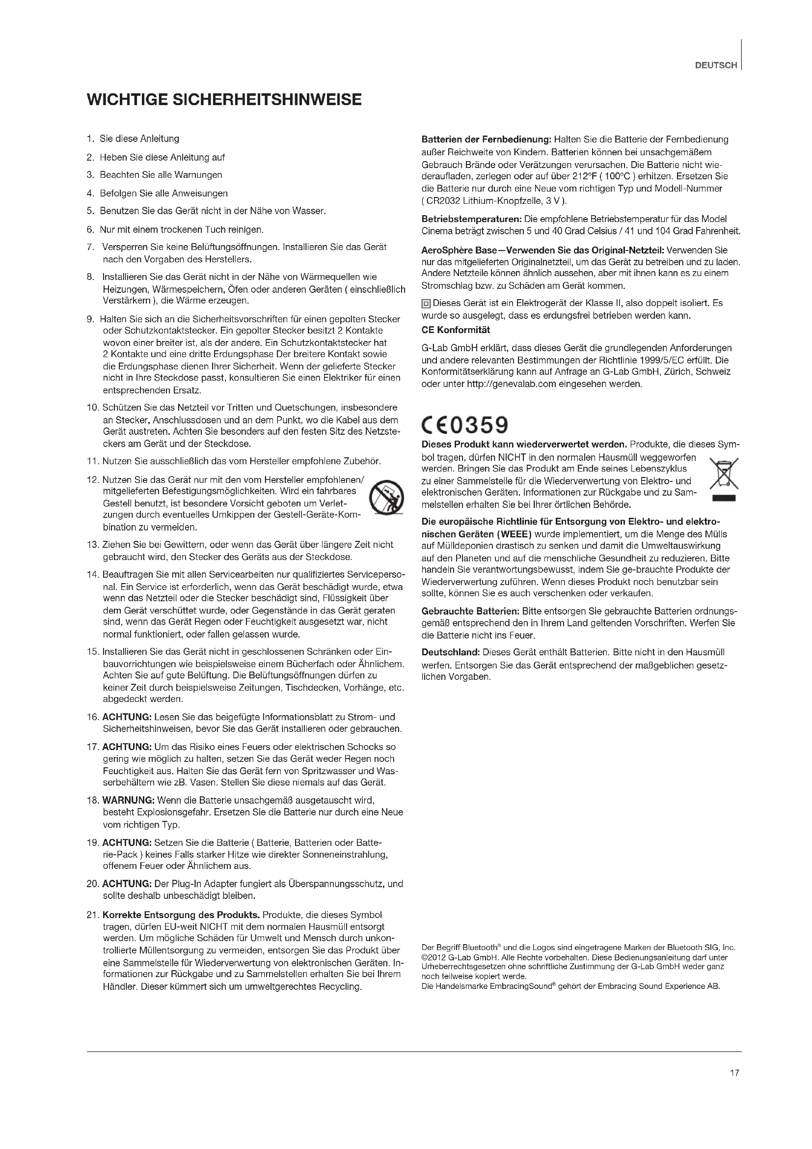 Der Begriff Bluetooth® und die Logos sind eingetragene Marken der Bluetooth SIG, Inc. ©2012 G-Lab GmbH. Alle Rechte vorbehalten. Diese Bedienungsanleitung darf unter Urheberrechtsgesetzen ohne schriftliche Zustimmung der G-Lab GmbH weder ganz noch teilweise kopiert werden.