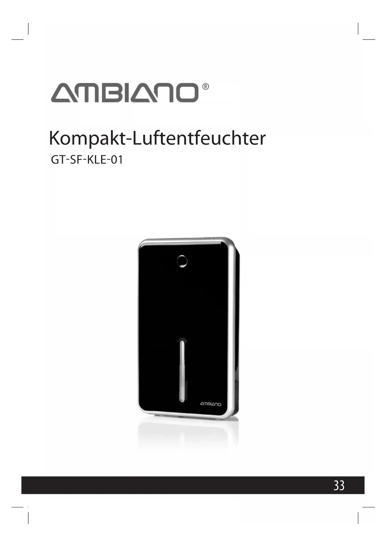 Einführung Vielen Dank, dass Sie sich für den Kompakt-Luftentfeuchter von Am- biano entschieden haben. Sie haben damit ein qualitativ hochwertiges Produkt erworben, das höchste Leistungs- und Sicherheitsstandards erfüllt. Für den richtigen Umgang und eine lange Lebensdauer empfehlen wir Ihnen die nachfolgenden Hinwei- se zu beachten. Bitte lesen Sie die Anleitung und insbesondere die Sicherheitshinweise vor der Inbetriebnahme des Gerätes sorgfältig durch. Sie nden eine Reihe von wichtigen und nützlichen Hinwei- sen, die vor der Inbetriebnahme von jedem Benutzer verstanden und beachtet werden müssen. Bewahren Sie die Bedienungsanleitung auf und geben Sie diese bei Weitergabe des Gerätes mit. EU-Konformitätserklärung Die EU-Konformitätserklärung kann beim Hersteller/Importeur angefordert werden. Mit dem CE-Symbol markierte Produkte erfüllen die Anfor- derungen aller zutreffenden EG-Richt- linien. Das Gerät entspricht den Anforderungen des deutschen Pro- duktsicherheitsgesetzes. Dies wird nachgewiesen durch das GS-Zeichen des unabhän- gigen Prüf- institutes: Bestimmungsgemäße Verwendung Das Gerät ist ausschließlich zum Entfeuchten von geschlossenen Räumen bestimmt. Zudem ist das Gerät nicht für den gewerblichen Gebrauch bestimmt, sondern ausschließlich für die Benutzung im privaten Haushalt. Jede ande- re Verwendung oder Änderung des Gerätes ist nicht bestim- mungsgemäß und ist grundsätz- lich untersagt. Für Schäden, die durch nicht bestimmungsge- mäßen Gebrauch oder falsche Bedienung entstanden sind, kann keine Haftung übernommen wer- den. Dieses Produkt ist eingestuft als ein Gerät, das der allgemeinen Öffentlichkeit zugänglich ist. Herausgeber der Anleitung: Globaltronics GmbH & Co. KG Bei den Mühren 5 20457 Hamburg, Deutschland Allgemeines37