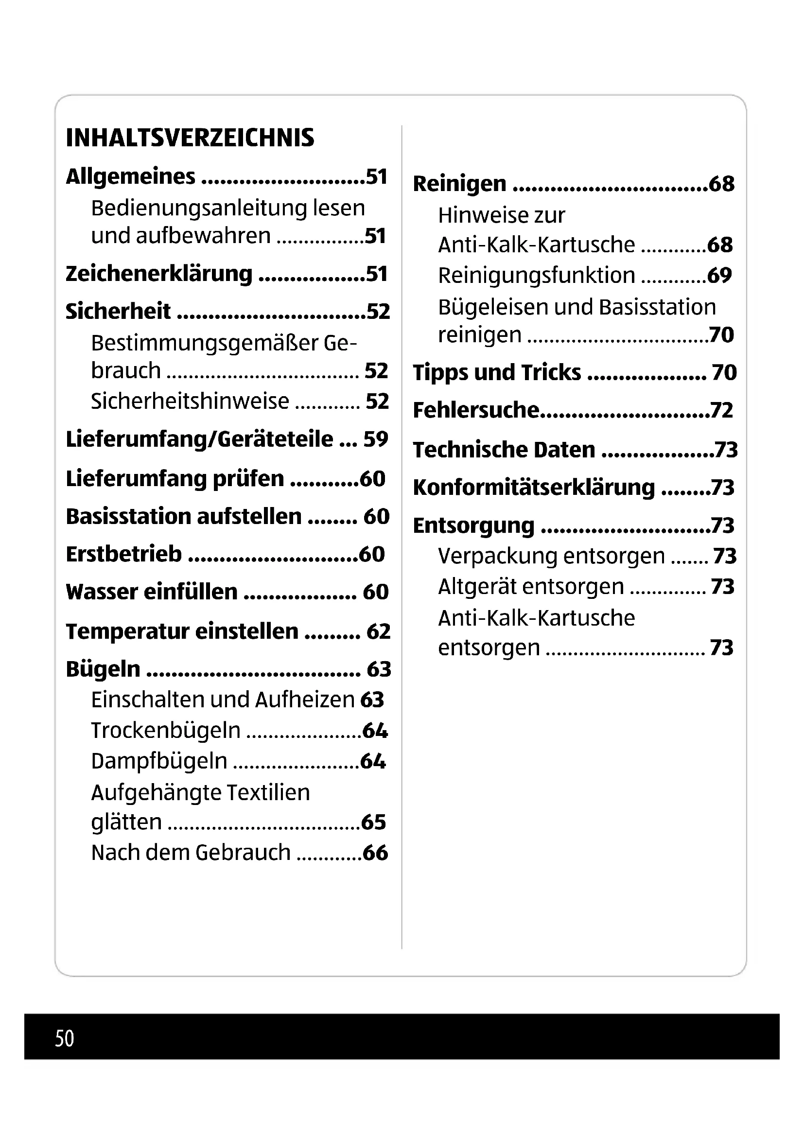 - Bügeleisen und Basisstation reinigen p. 70