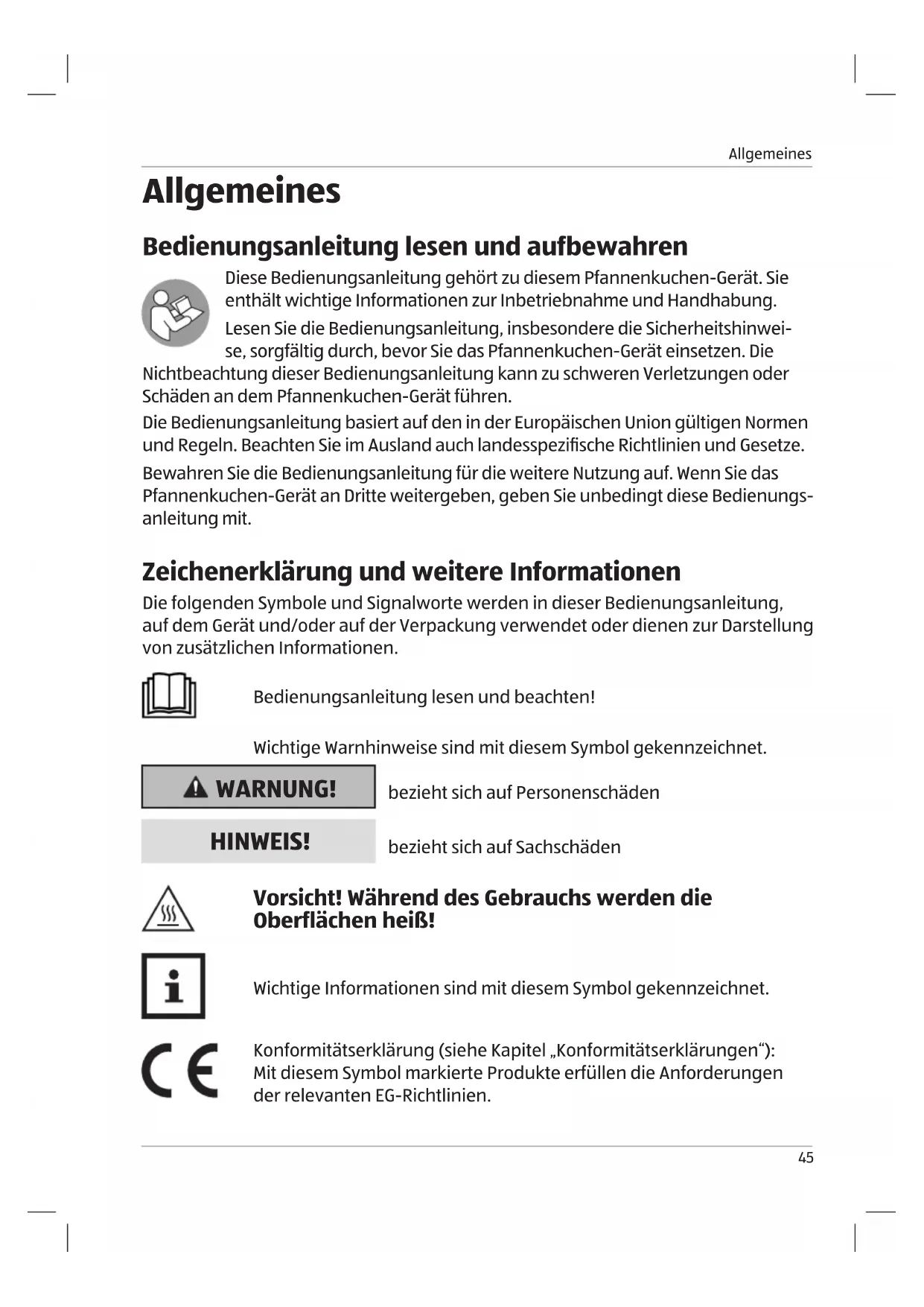 - Bedienungsanleitung lesen und aufbewahren p. 45