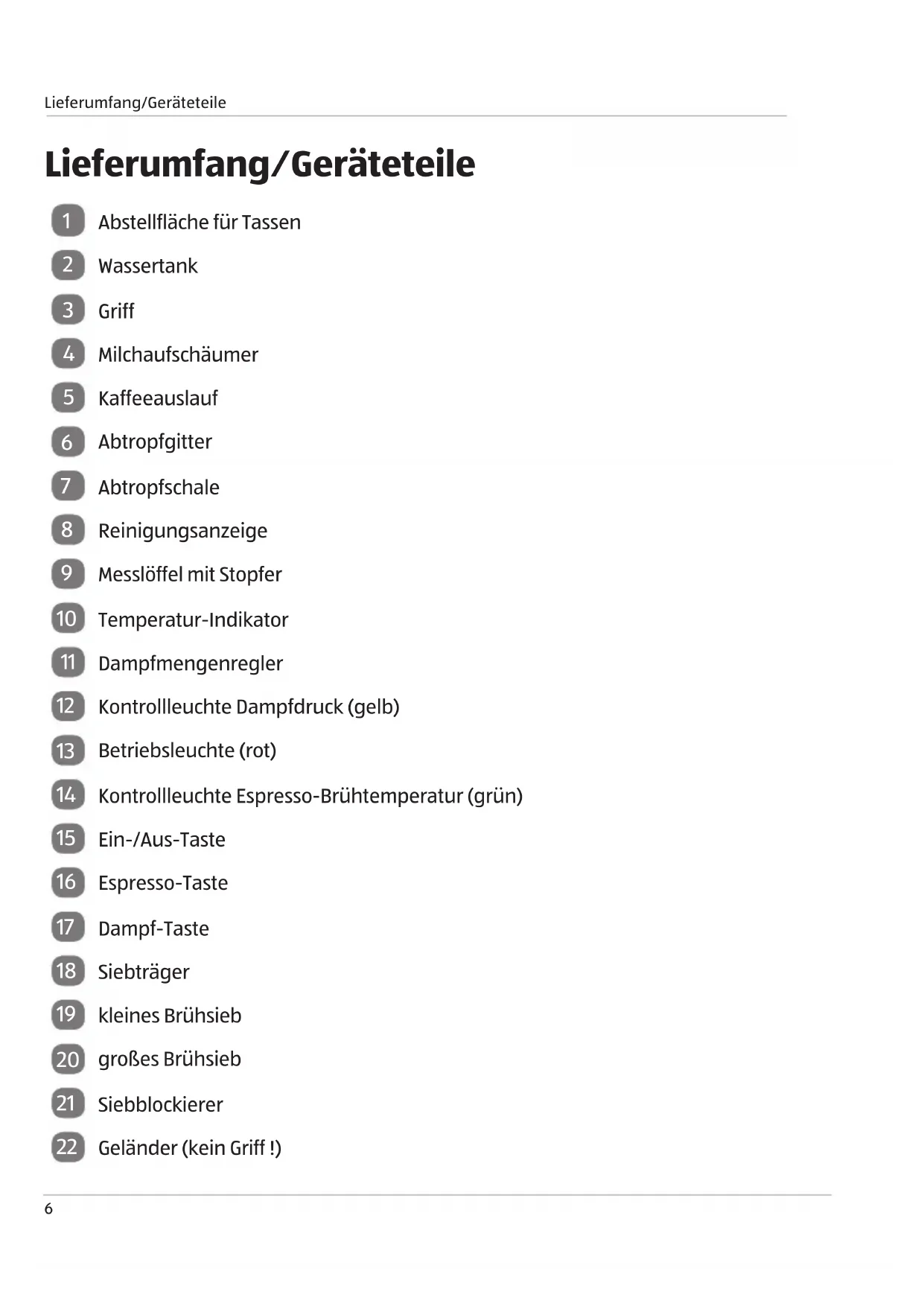 Die Espresso-Maschine wird während des Betriebs besteht. Sie können sich verbrennen. Besonderss die Metallteile bleiben längerere Zeit besteht.