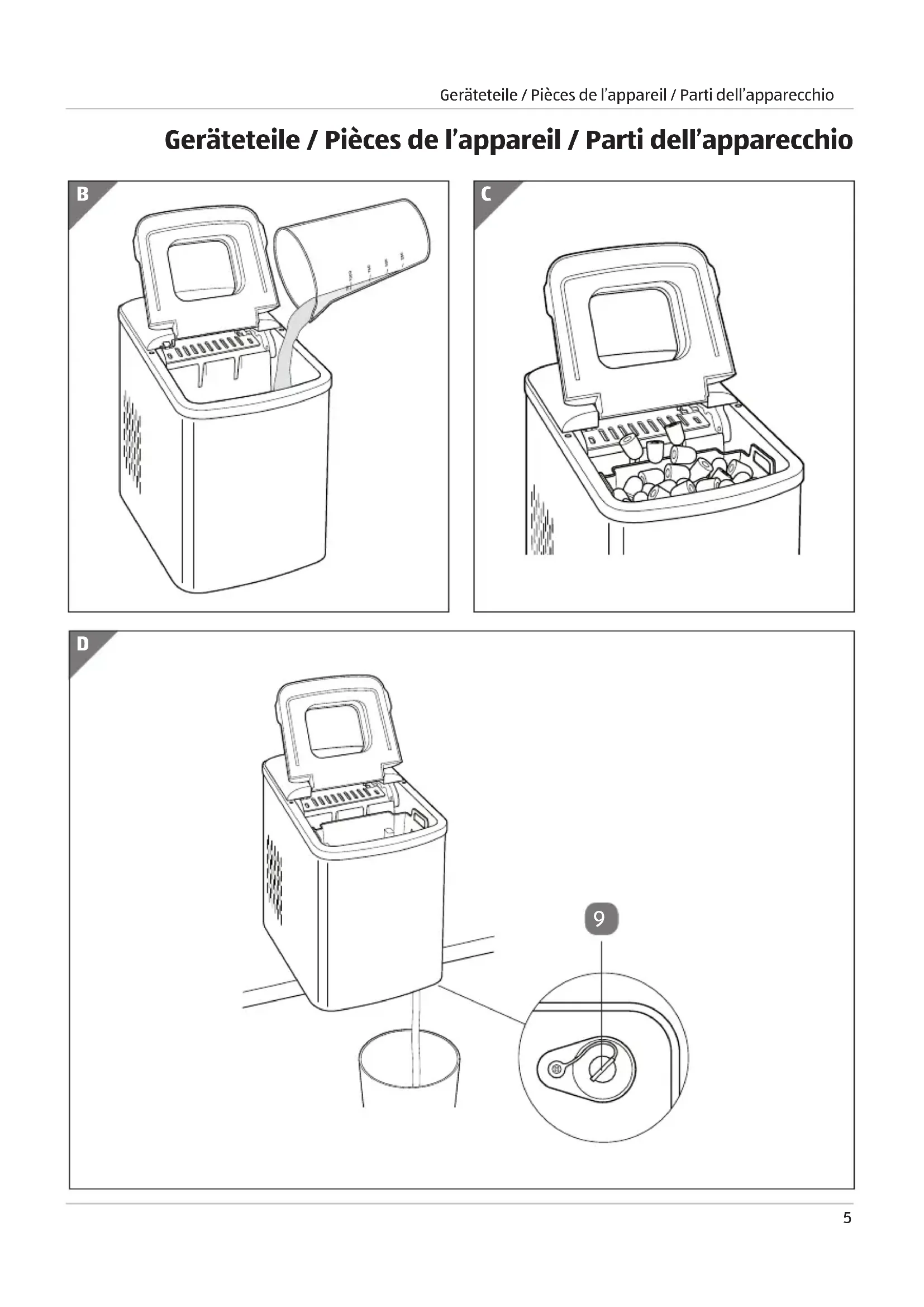 Eiswürfelmaschine CH Aussen.indd 6Eiswürfelmaschine CH Aussen.indd 6 28.12.2020 10:39:0528.12.2020 10:39:055 Geräteteile / Pièces de l’appareil / Parti dell’apparecchio Geräteteile / Pièces de l’appareil / Parti dell’apparecchio B C