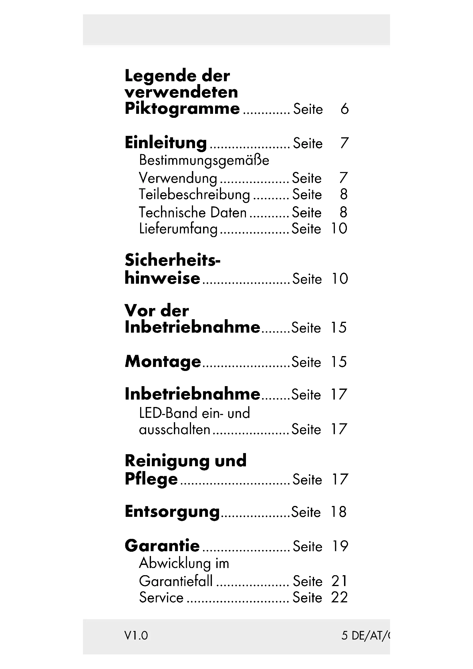 DE/AT/CH Montage-, Bedienungs- und Sicherheitschinweise. 5