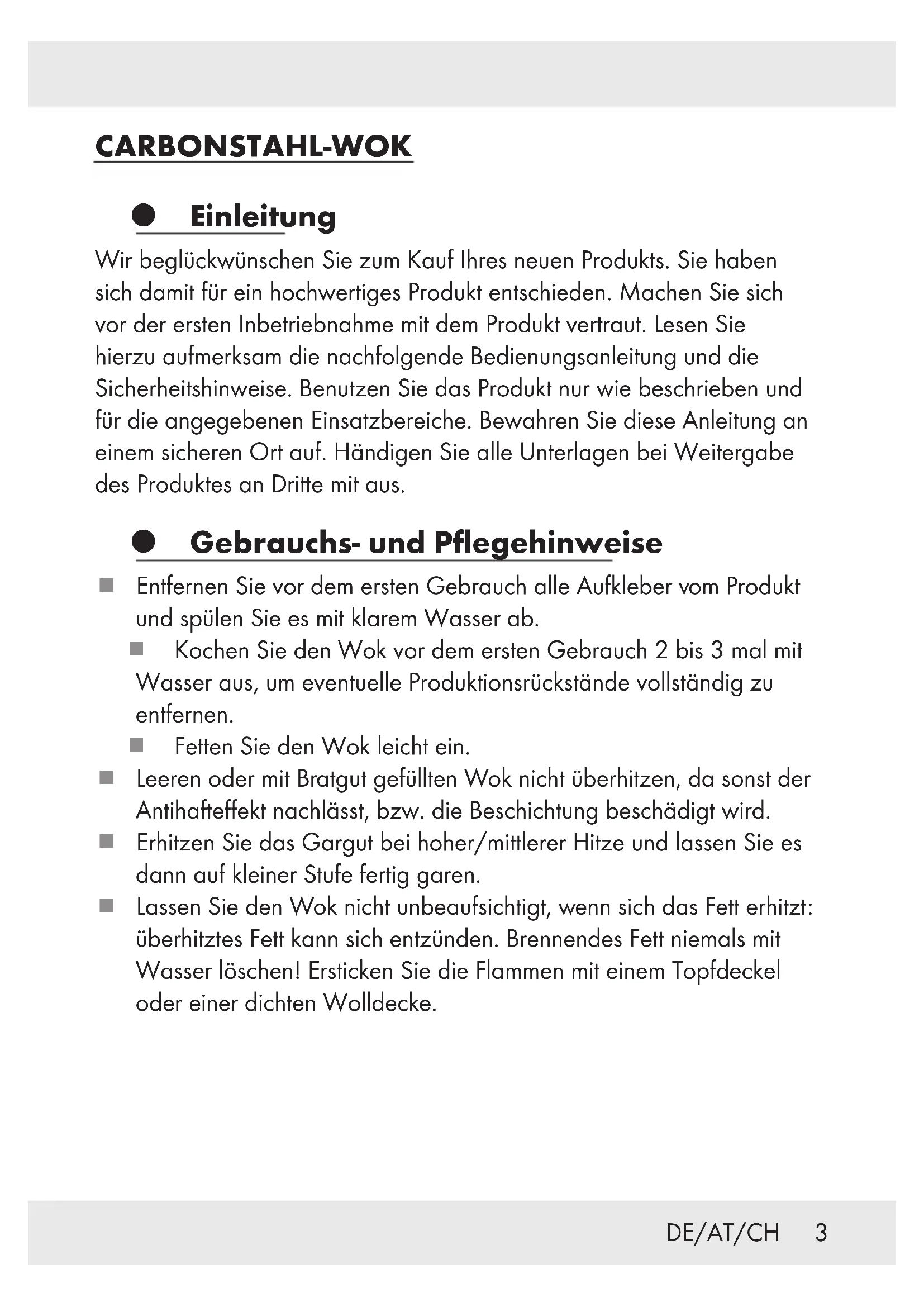 CARBONSTAHL-WOK Bedienungs- und Sicherheitshinweise