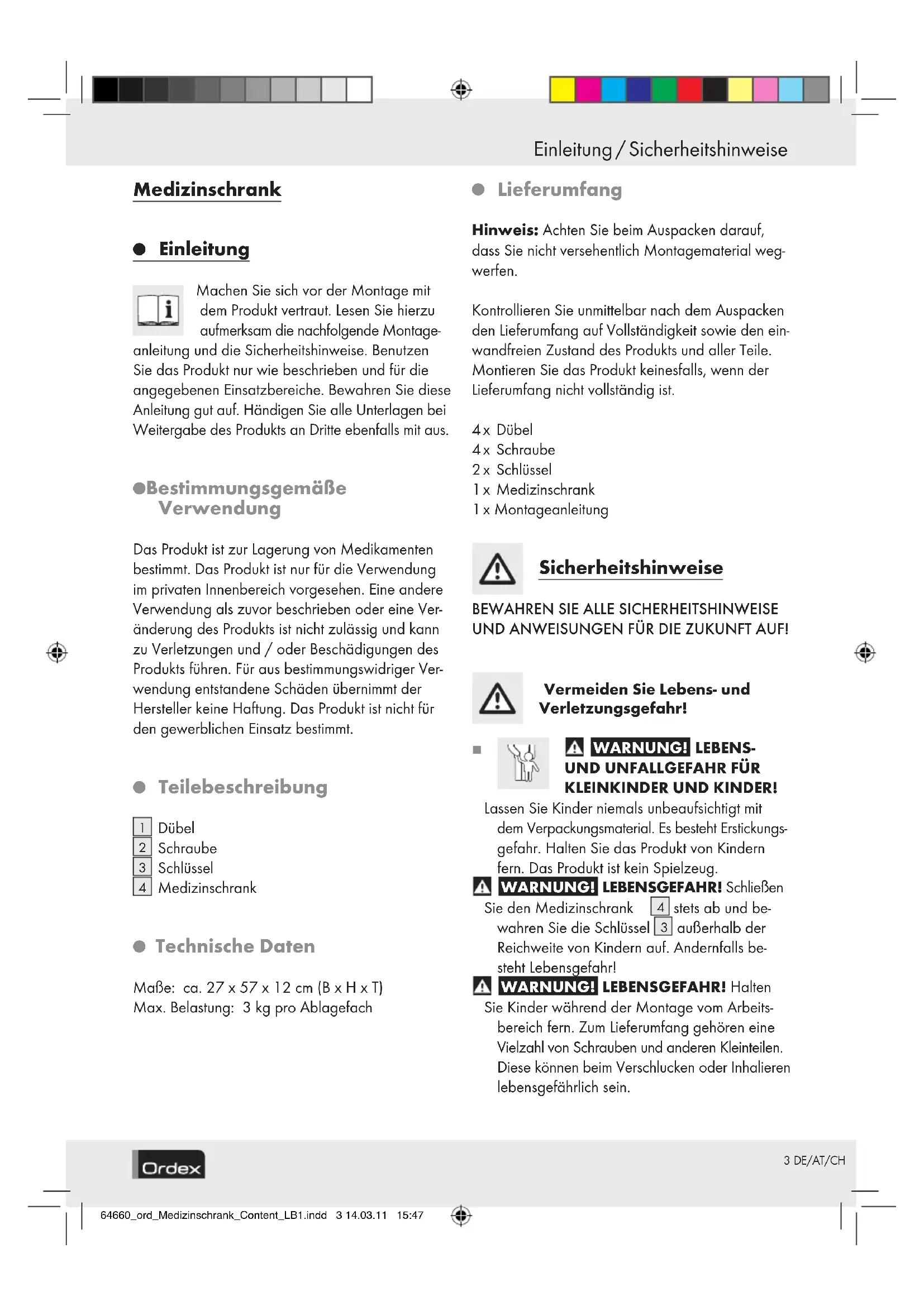 3 DE/AT/CH Einleitung / Sicherheitshinweise Medizinschrank
