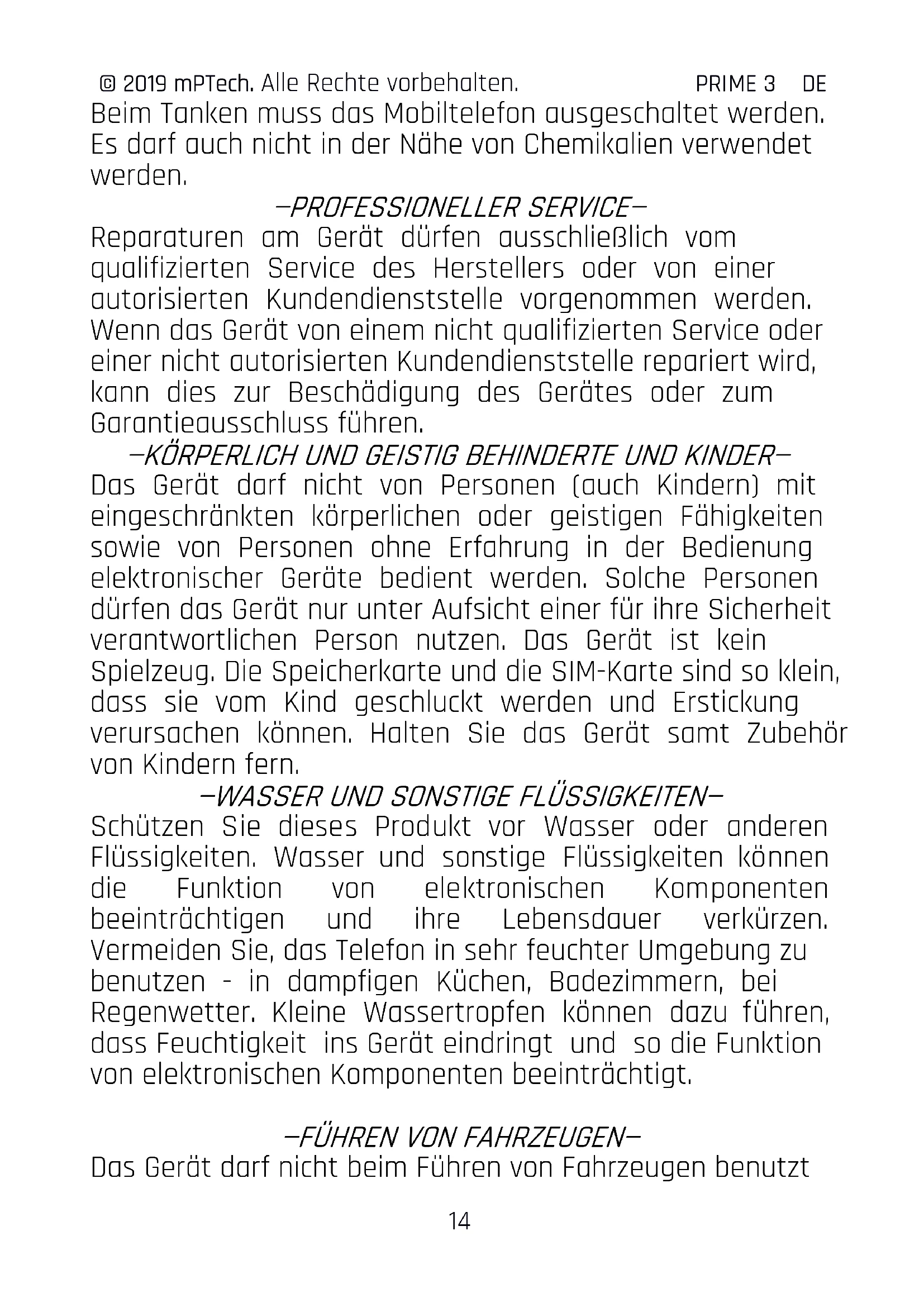 -KÖRPERLICH UND GEISTIG BEHINDERTE UND KINDER—Das Gerät darf nicht von Personen (auch Kindern) mit eingeschränkten körperlichen oder geistigen Fähigkeiten sowie von Personen ohne Erfahrung in der Bedienung elektronischer Geräte bedient werden. Solche Personen dürfen das Gerät nur unter Aufsicht einer für ihre Sicherheit verantwortlichen Person nutzen. Das Gerät ist kein Spielzeug. Die Speicherkarte und die SIM-Karte sind so klein, dass sie vom Kind geschluckt werden und Erstickung verursachen können. Halten Sie das Gerät samt Zubehör von Kindern fern.