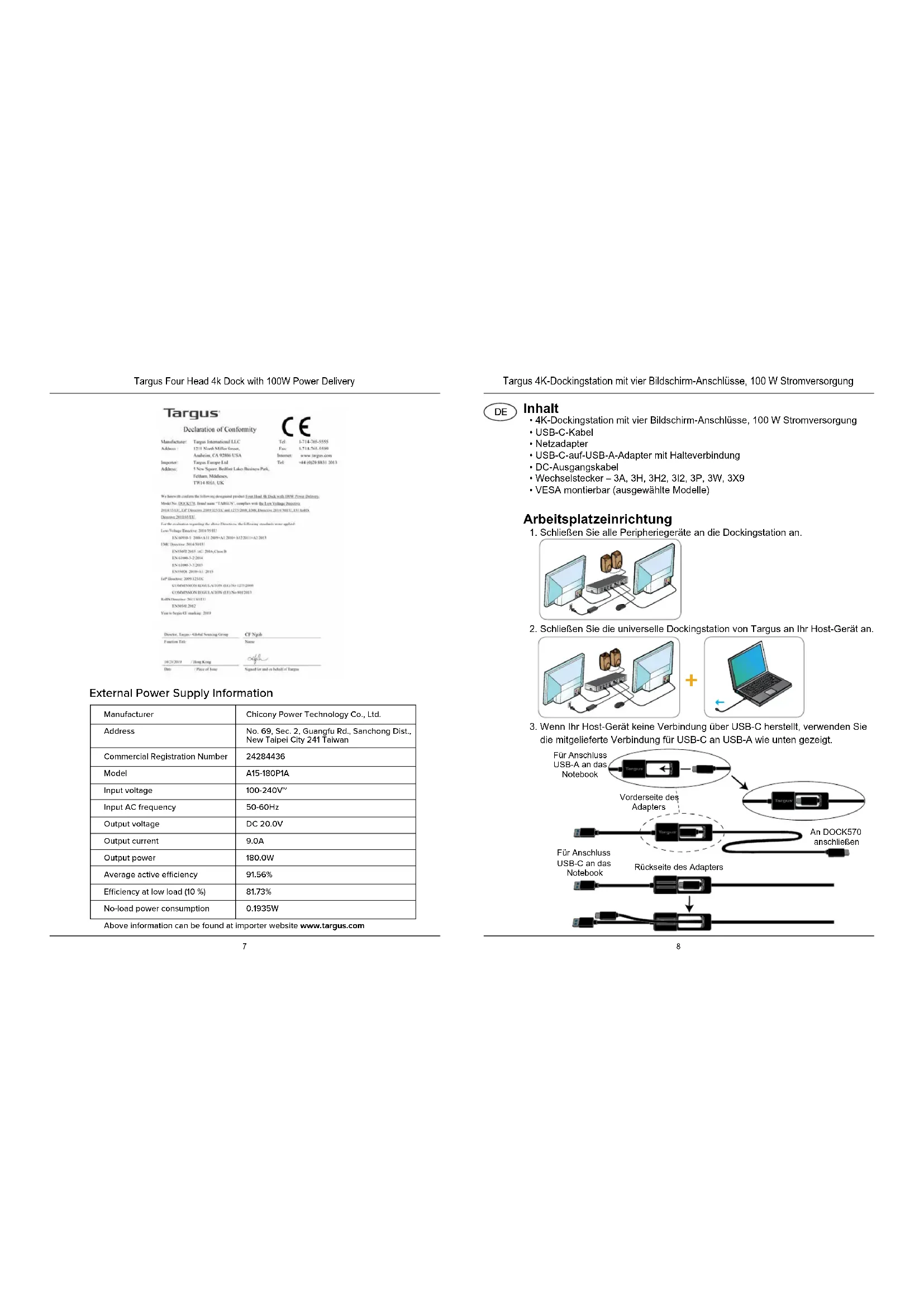 Finden Sie kostenlos die Bedienungsanleitung des Geräts DOCK570EUZ TARGUS als PDF.
