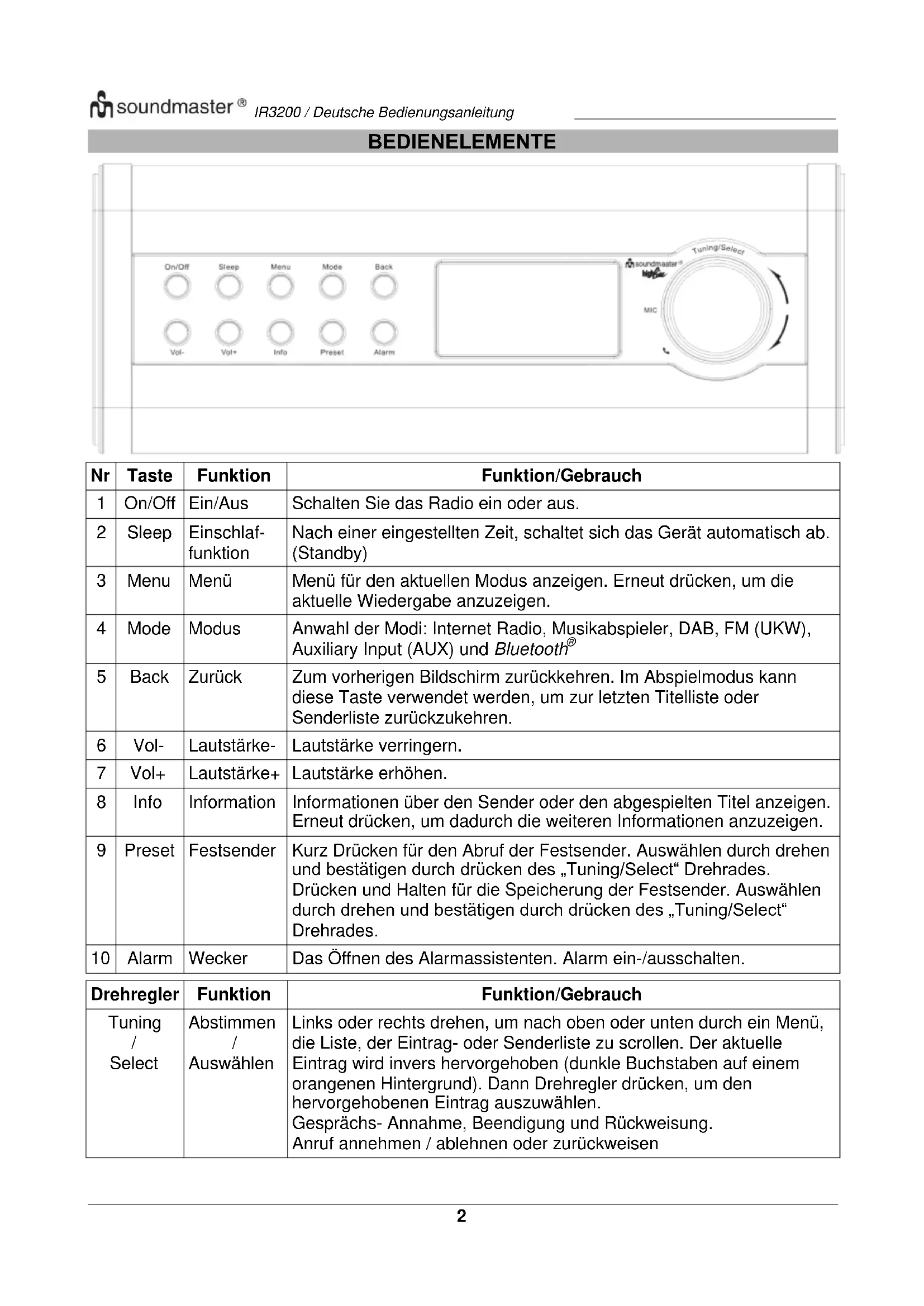 Finden Sie kostenlos die Bedienungsanleitung des Geräts IR3200 Soundmaster als PDF.