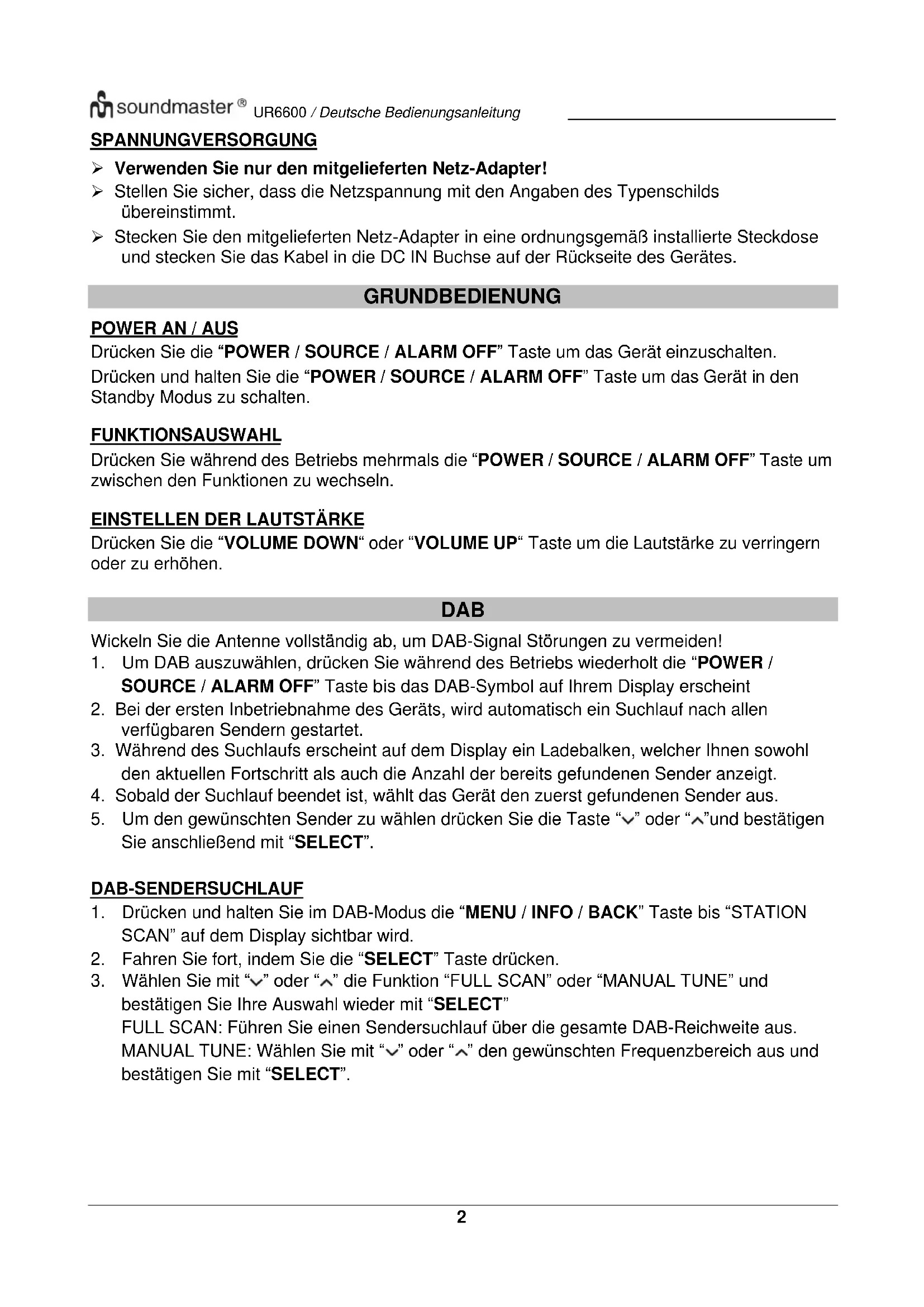 BEDIENUNGSANLEITUNG UR6600 Soundmaster