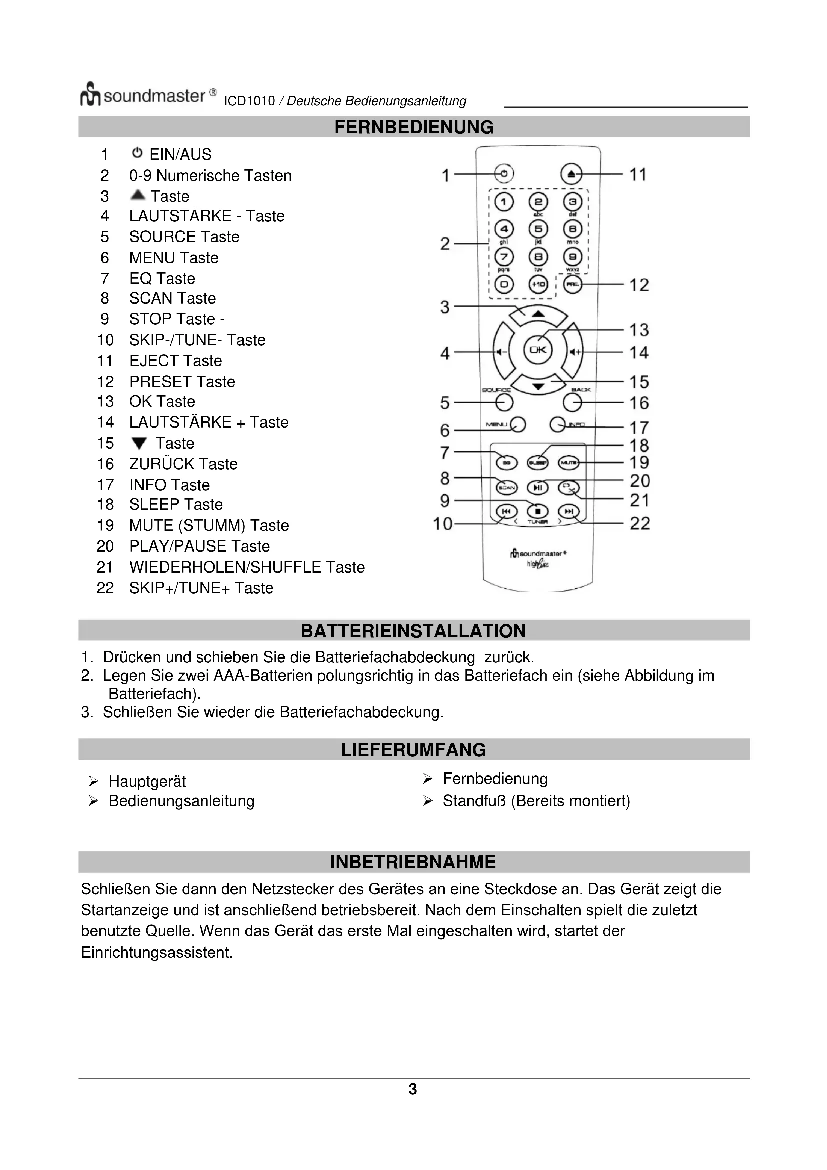 BEDIENUNGSANLEITUNG ICD1010 Soundmaster