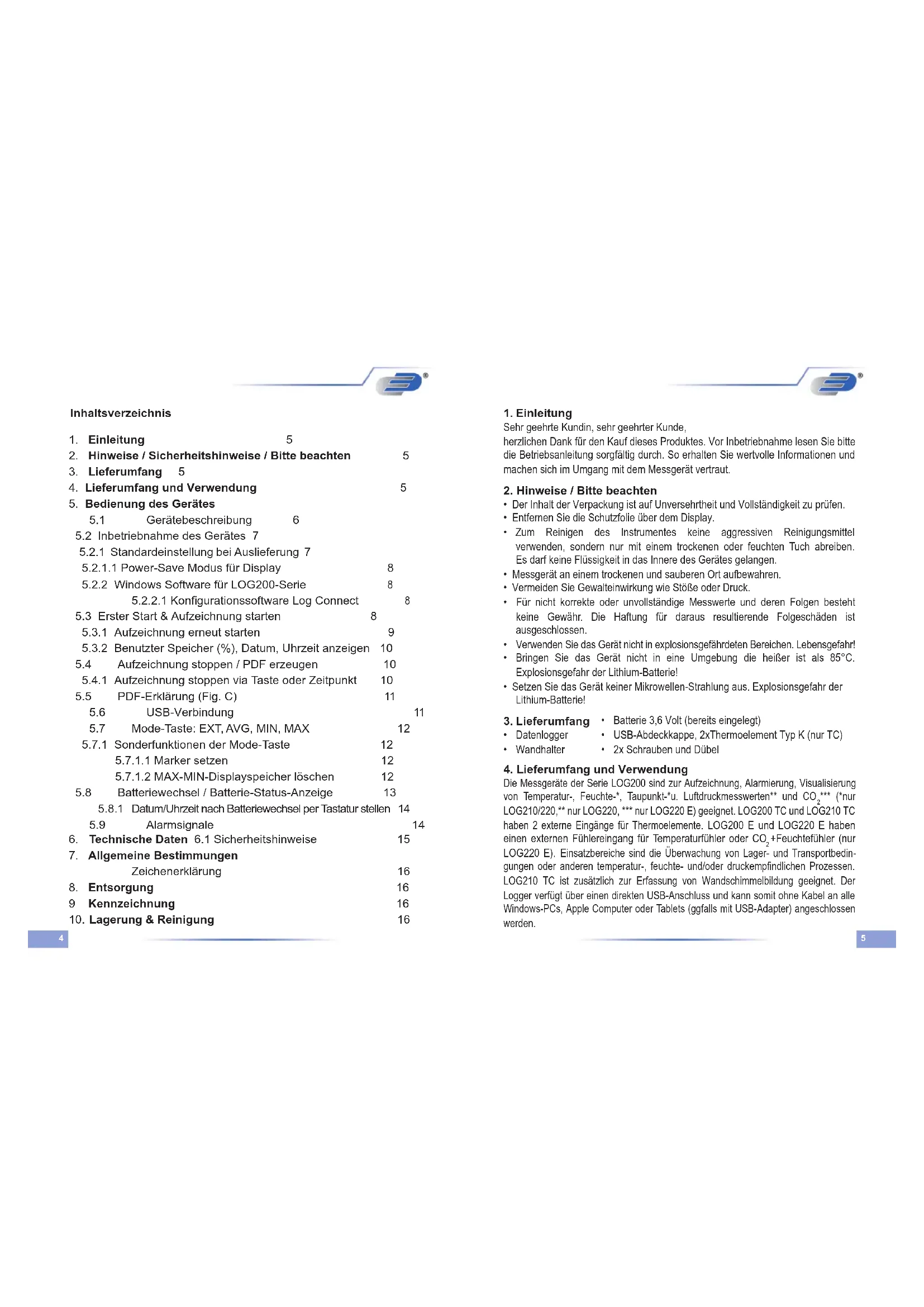 4. Lieferumfang und Verwendung 5