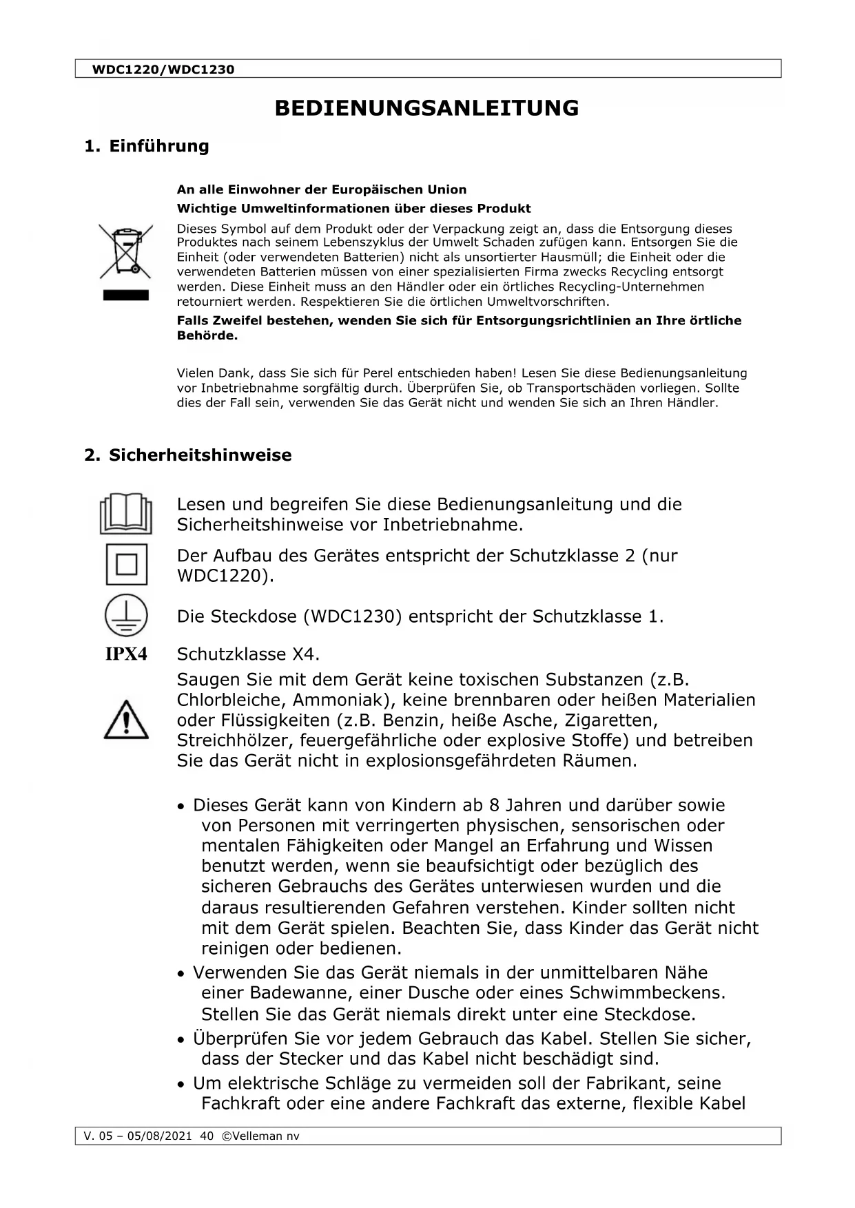 WDC1230 - Staubsauger Perel - Kostenlose Bedienungsanleitung