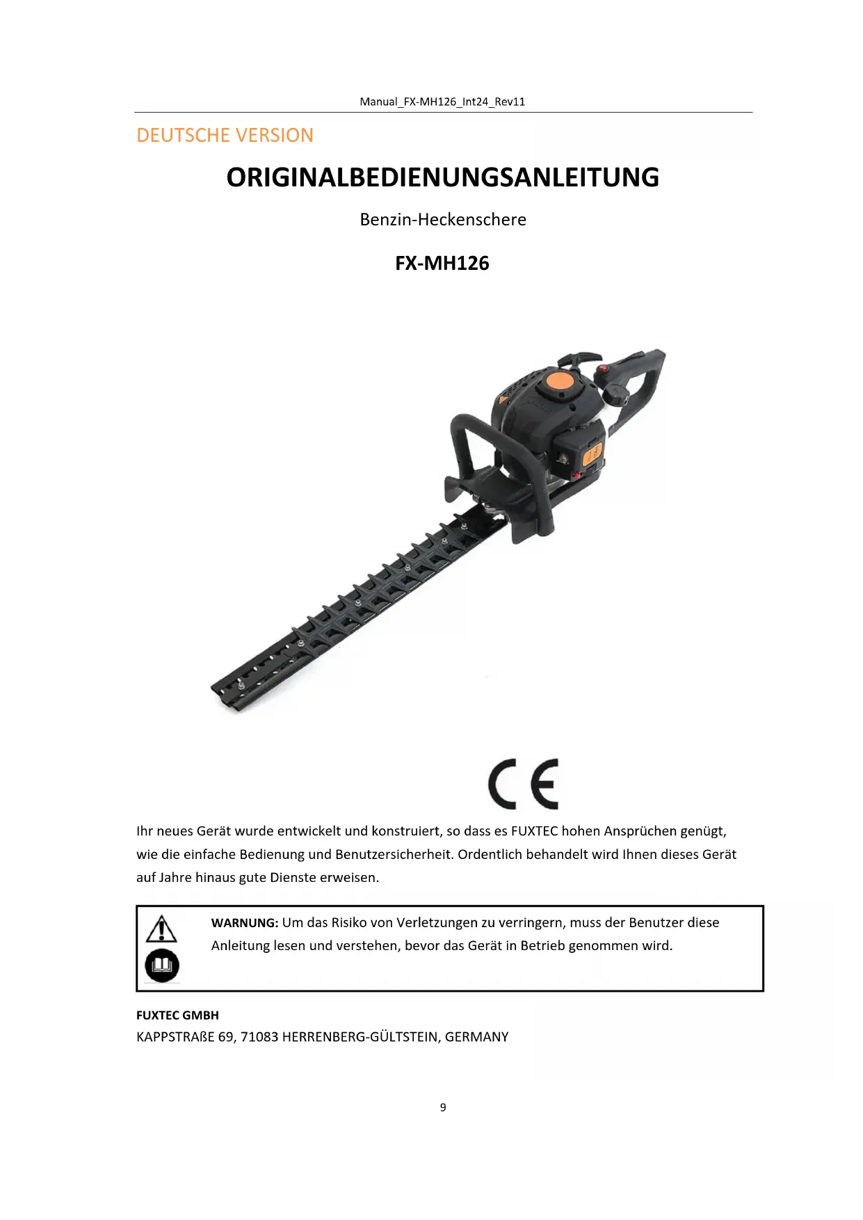 DEUTSCHE VERSION ORIGINALBEDIENUNGSANLEITUNG Benzin-Heckenschere FX-MH126