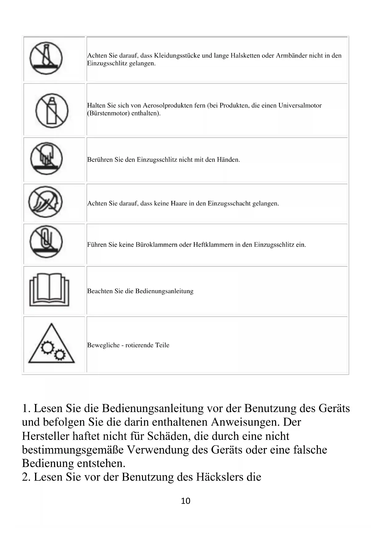 2. Lesen Sie vor der Benutzung des Häckslers die11