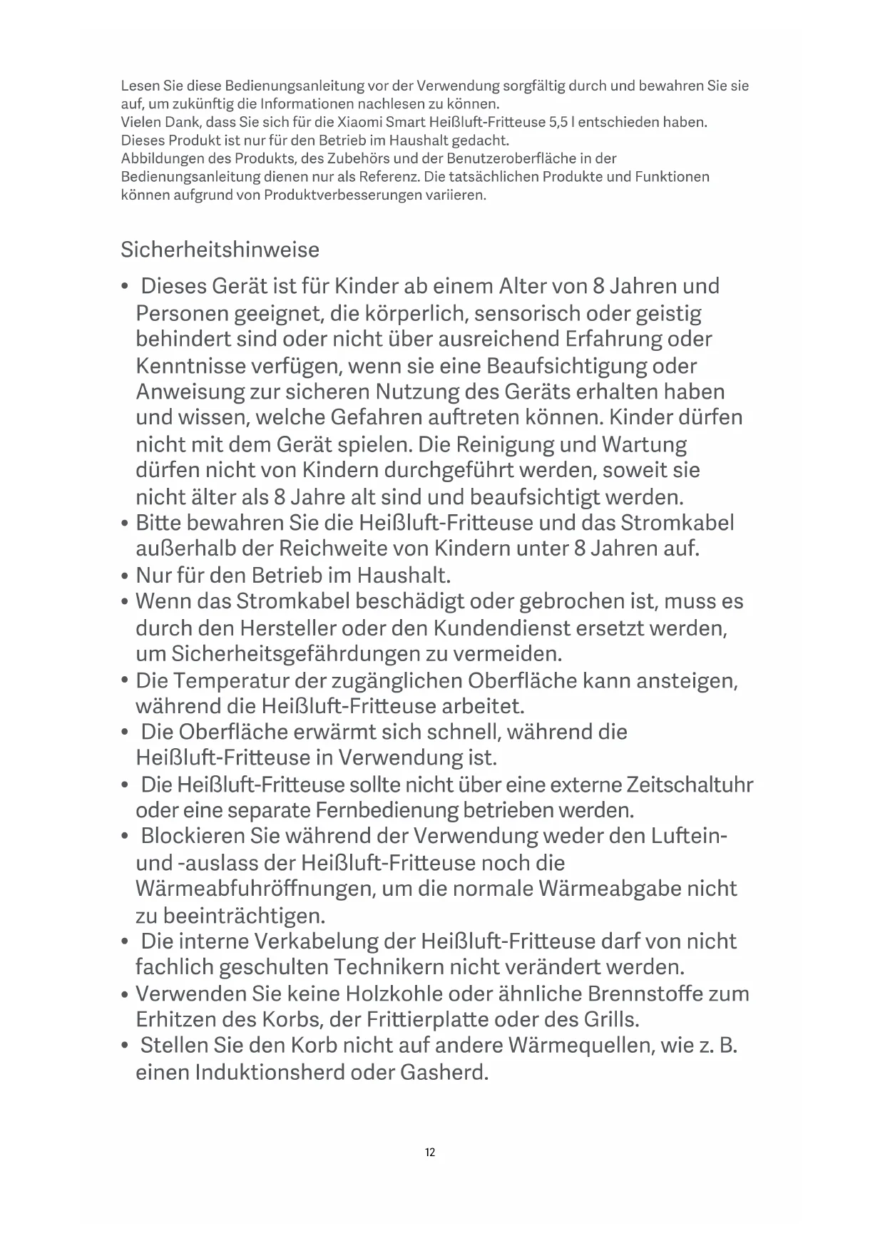 - 01 Xiaomi Smart Heißlu-Frieuse 5,5 l Bedienungsanleitung · 12
